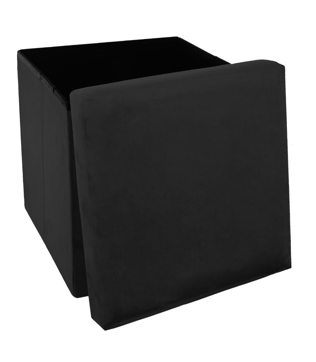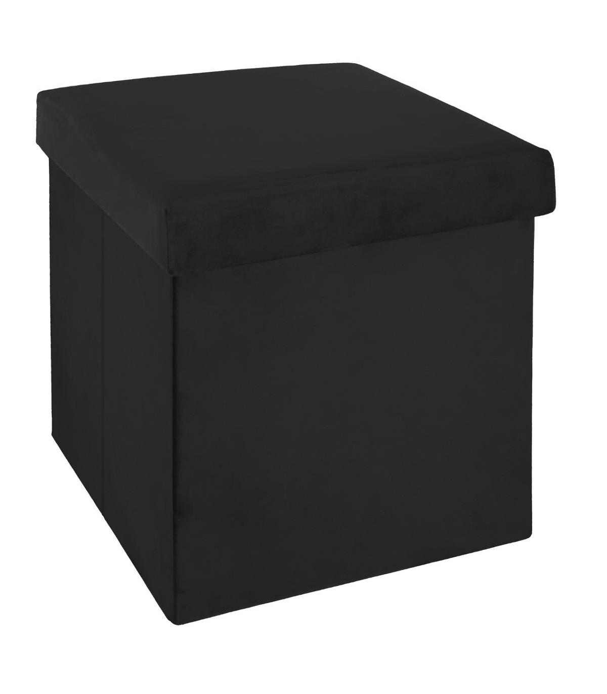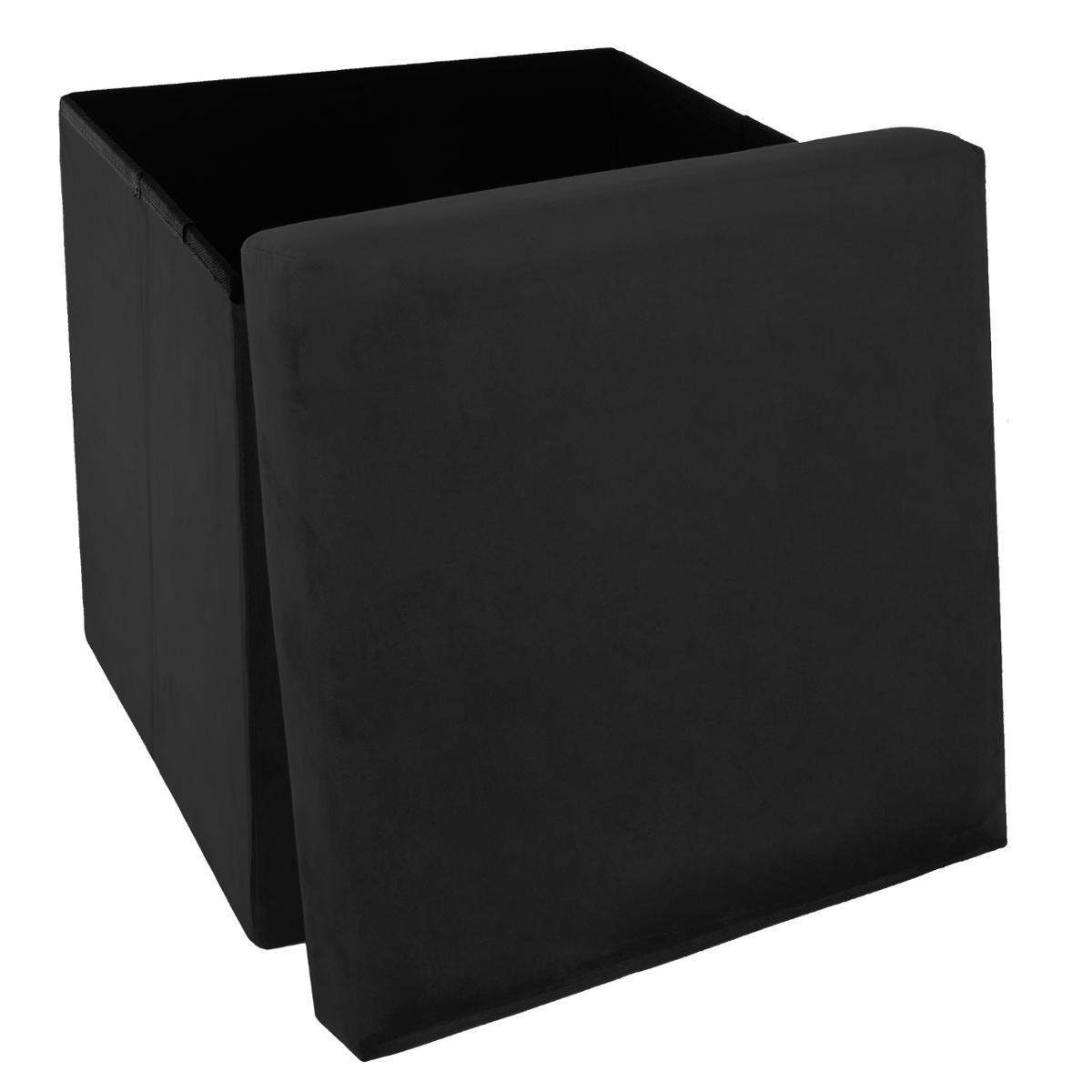 2 en 1 Pouf pliant et coffre de rangement Velours Noir 38 x 38 cm --