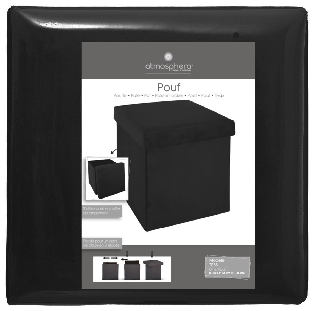 | Libellé | 2 en 1 Pouf pliant et coffre de rangement Velours Noir 38 x 38 cm |