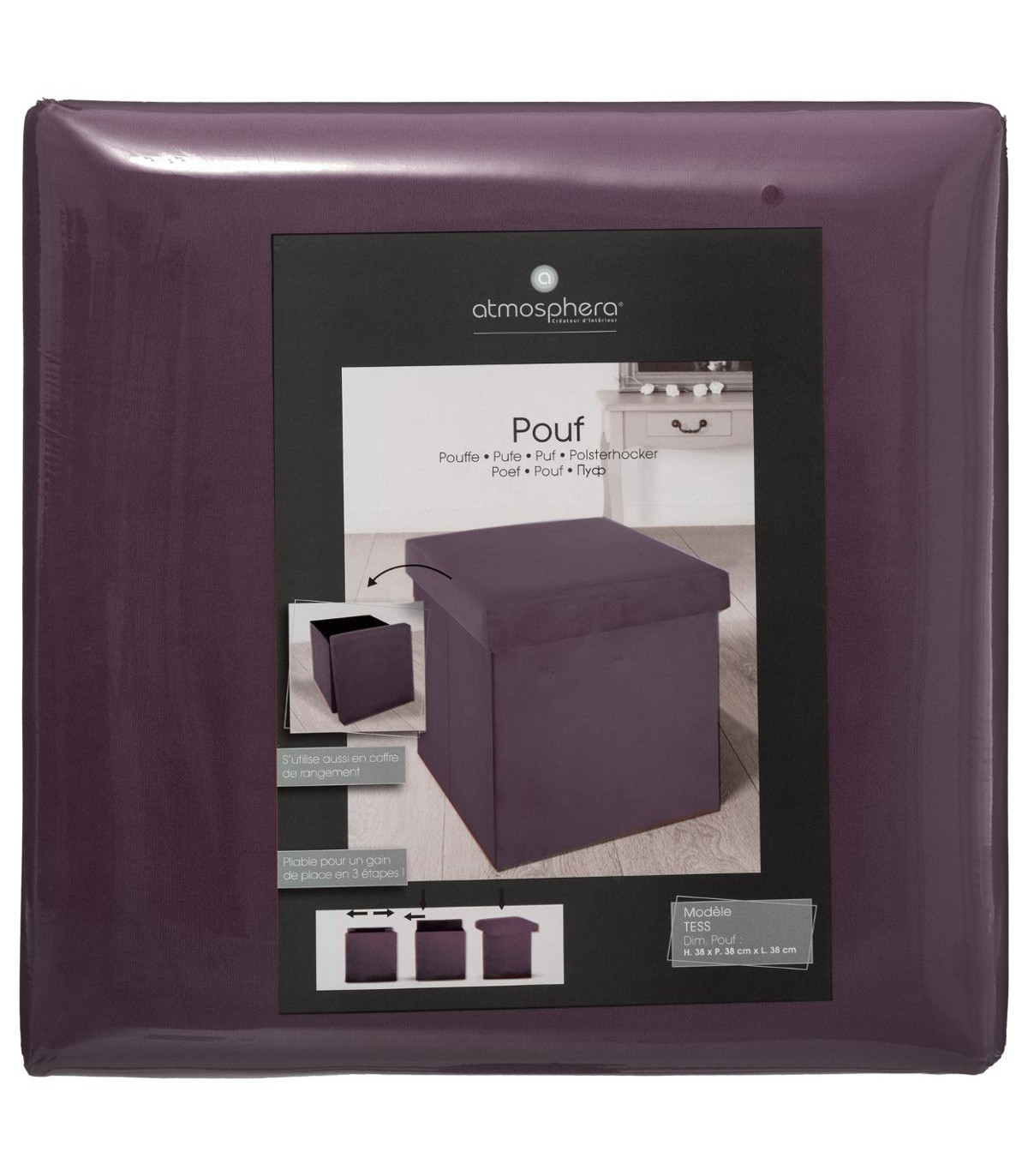 | Libellé | 2 en 1 Pouf pliant et coffre de rangement Velours Prune 38 x 38 cm |