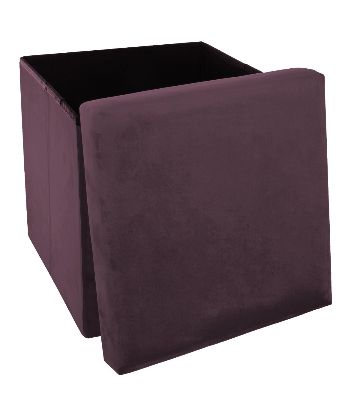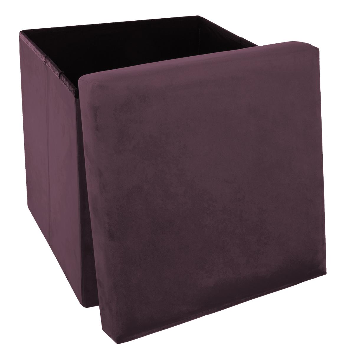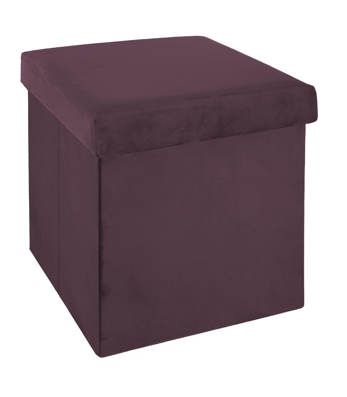 2 en 1 Pouf pliant et coffre de rangement Velours Prune 38 x 38 cm