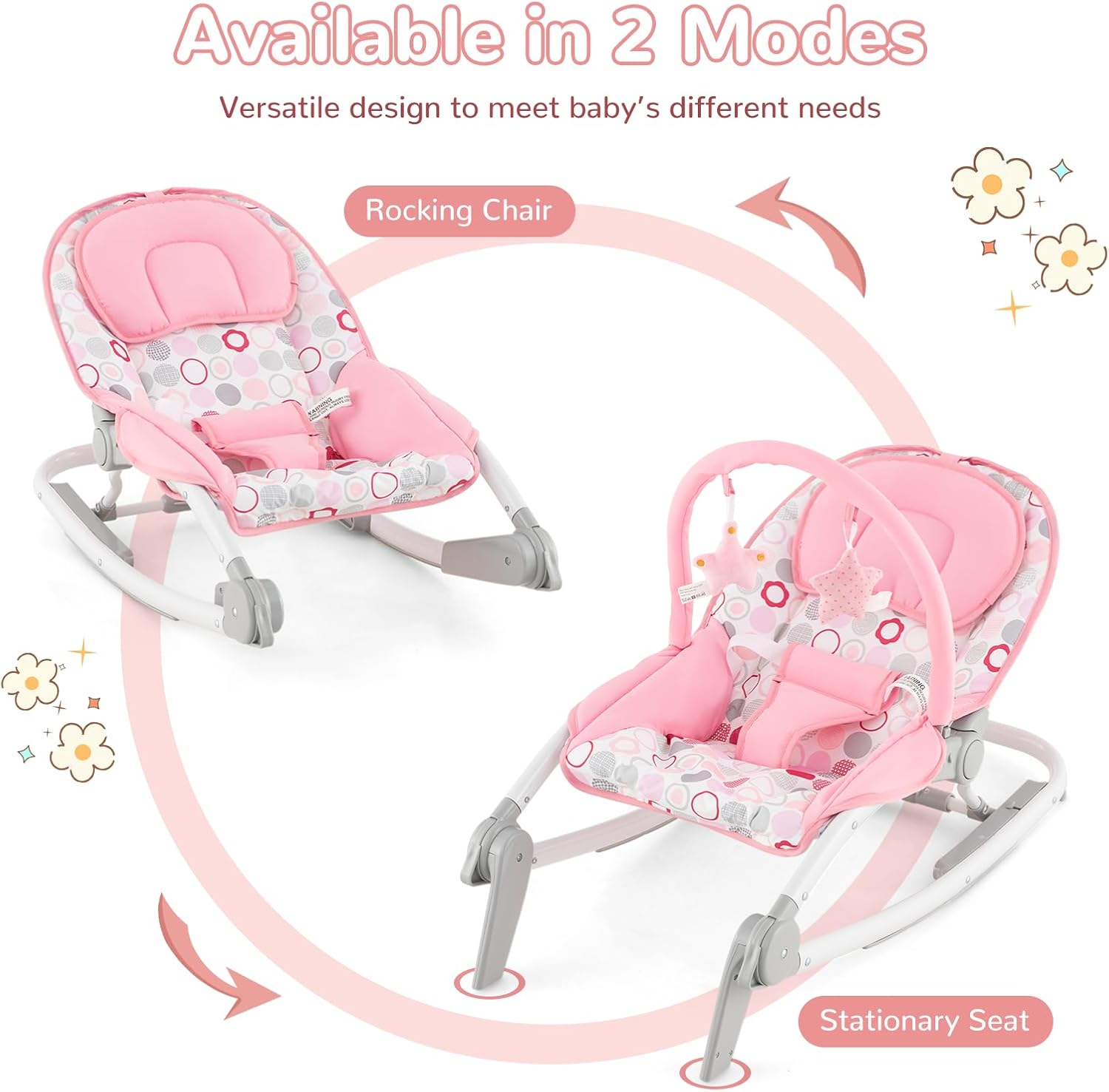 - Transat 2 en 1 — Ce transat balancelle pour bébé dispose de 2 modes disponibles. Votre bébé se calmera rapidement en mode bascule. Lorsque vous abaissez les 2 pieds de support avant, le siège bascule passe en mode fixe, permettant au bébé de dormir paisiblement.