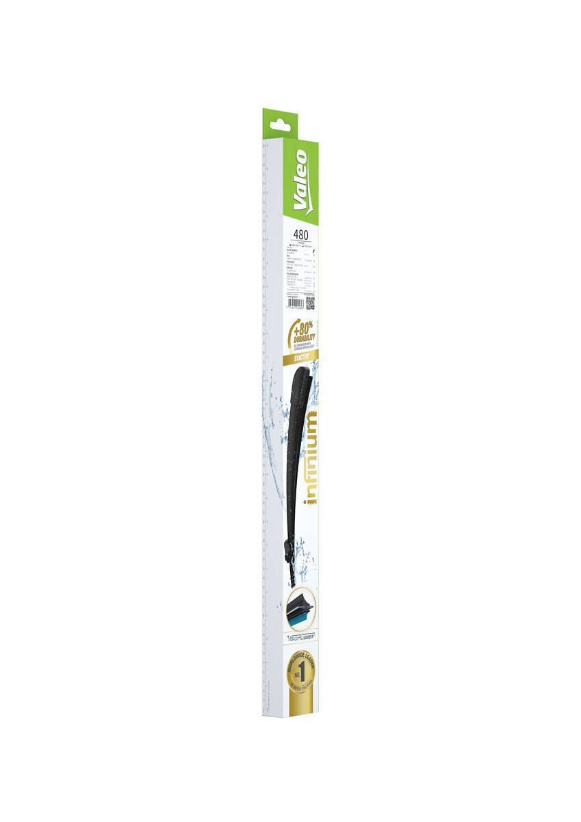 "Les balais d'essuie-glace Valeo Infinium assurent une durabilité d'essuyage accrue pour un maintient de la performance dans le temps. Valeo a développé et utilisé ses meilleurs caoutchoucs afin d'offrir une excellente qualité d'essuyage et garantir : - Une durabilité améliorée sous toutes conditions climatiques - Une performance optimisée"