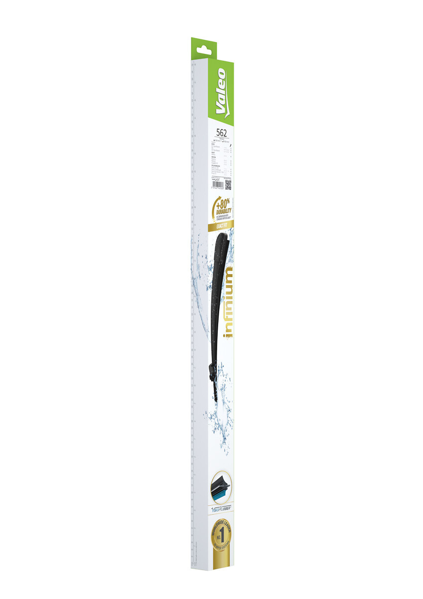 "Les balais d'essuie-glace Valeo Infinium assurent une durabilité d'essuyage accrue pour un maintient de la performance dans le temps. Valeo a développé et utilisé ses meilleurs caoutchoucs afin d'offrir une excellente qualité d'essuyage et garantir : - Une durabilité améliorée sous toutes conditions climatiques - Une performance optimisée"