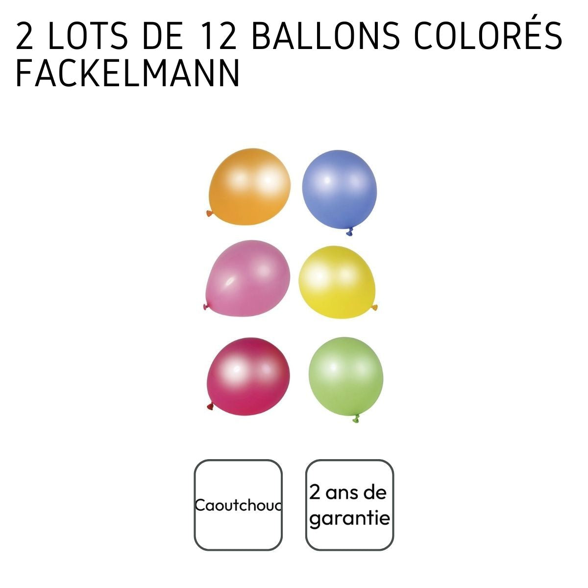 | Libellé | 2 Lots de 12 ballons de baudruche colorés pour anniversaire Fackelmann |