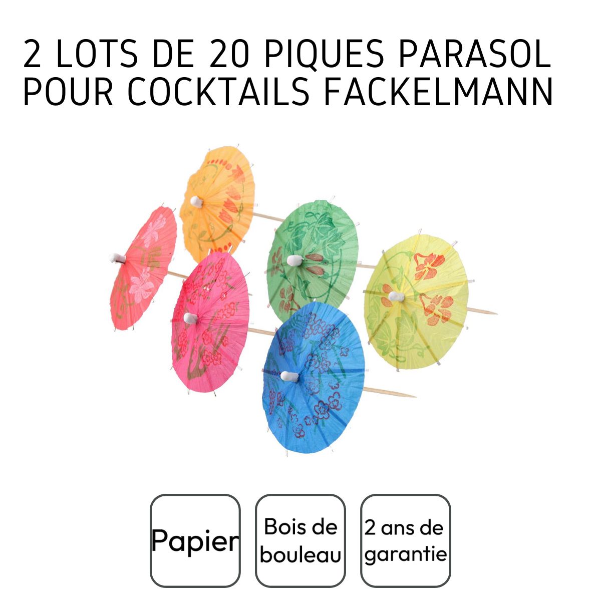 | Libellé | 2 Lots de 20 mini parasols pour cocktail Fackelmann |