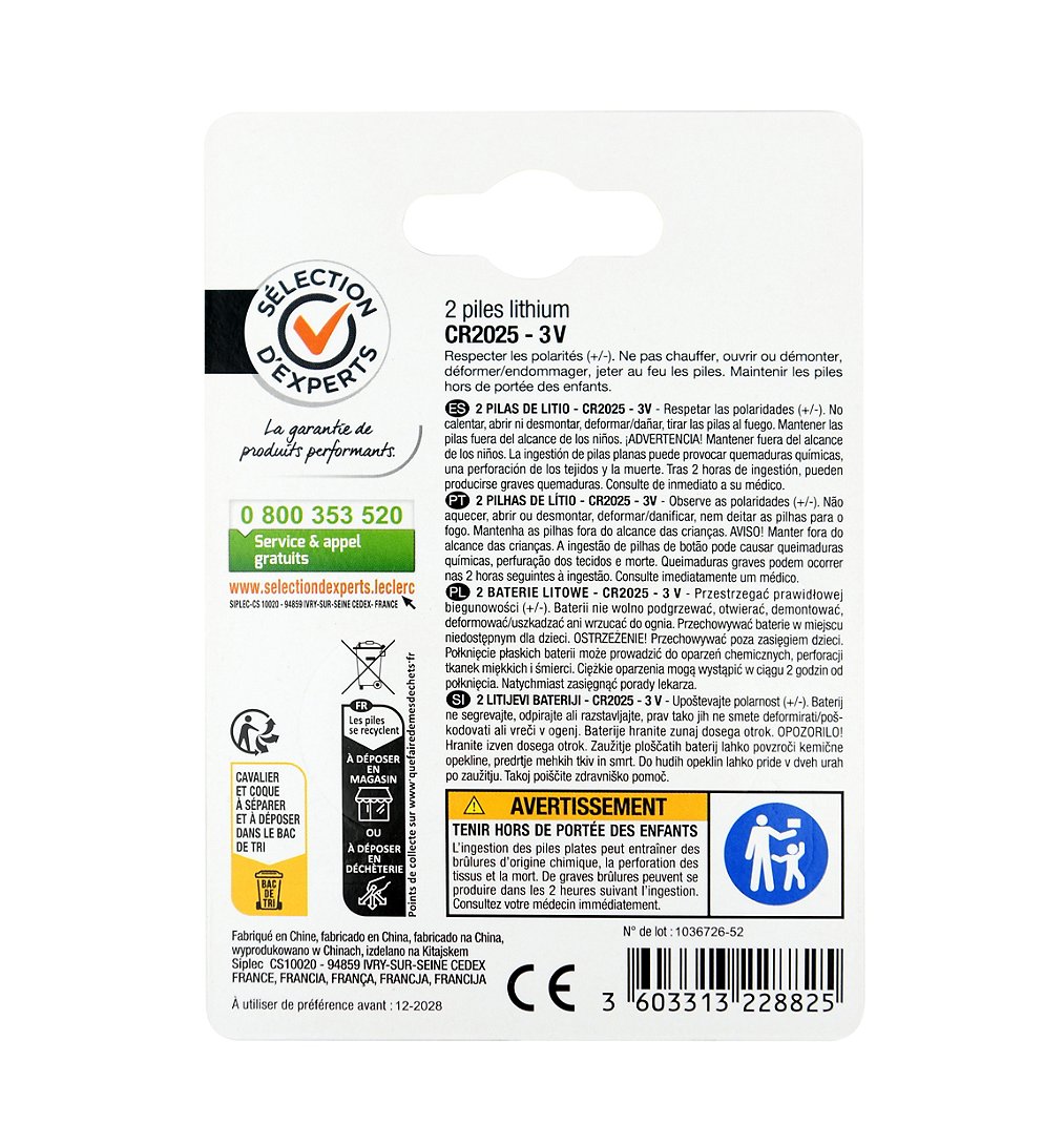 Libellé 2 piles CR2025 3V - Sélection d'Experts - Foxter