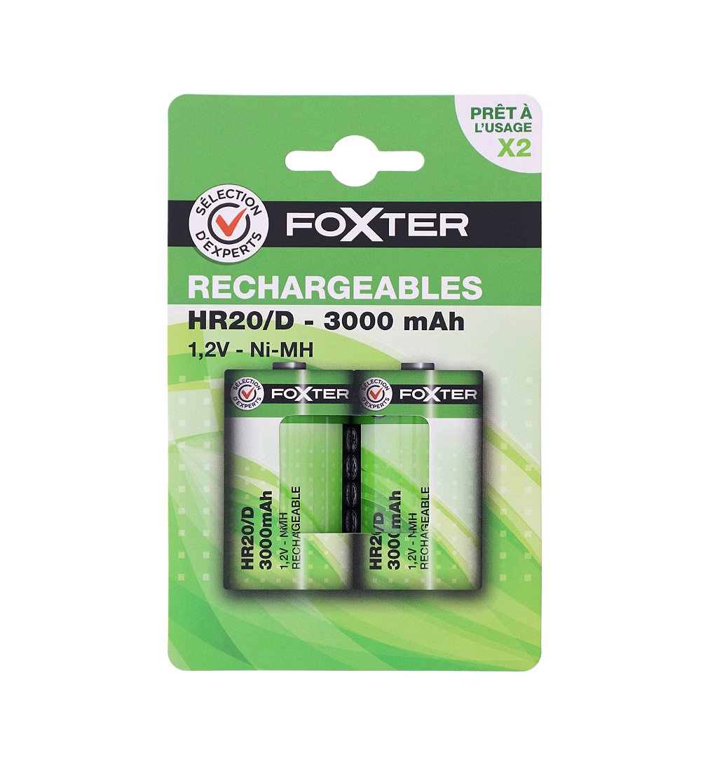 2 piles rechargeables HR20/D 3000 mAh - Sélection d'Experts - Foxter