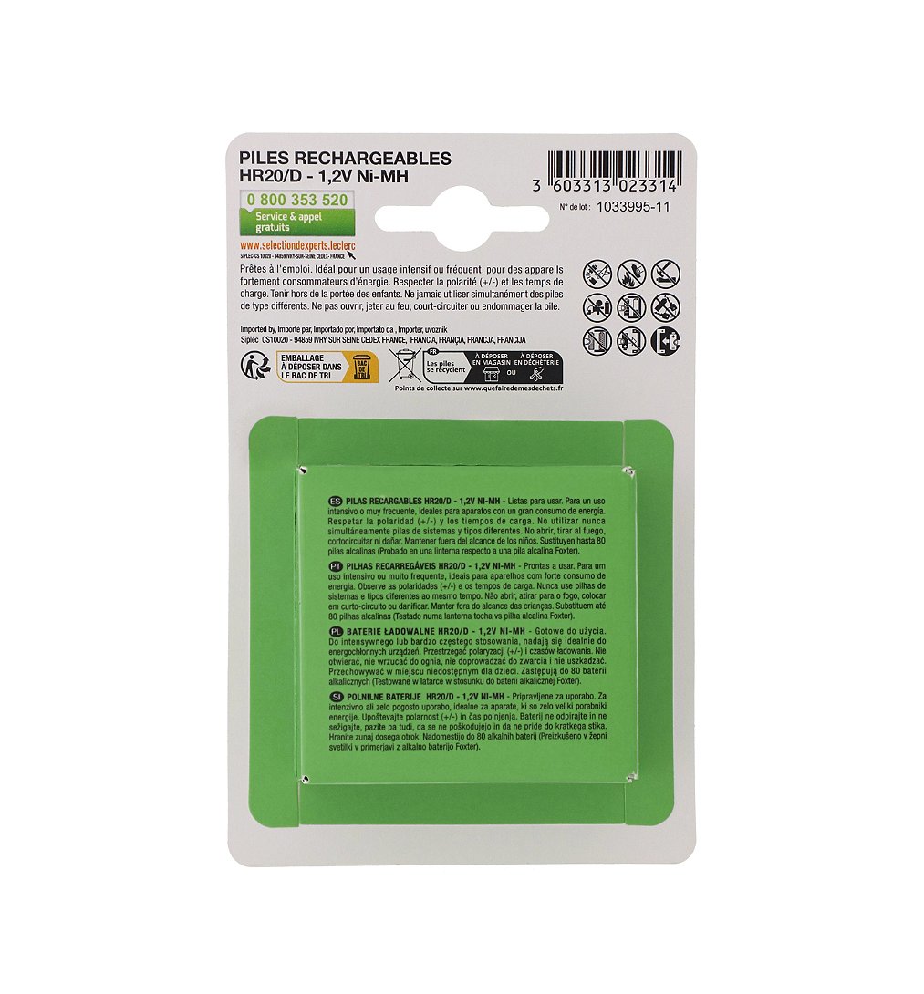 Libellé 2 piles rechargeables HR20/D 3000 mAh - Sélection d'Experts - Foxter