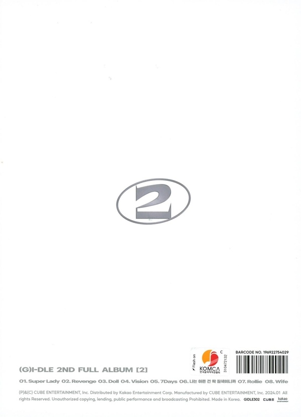 Voici le 2e album de I-DLE célèbre groupe féminin de KPOP. Sorti en 2024 cet opus est proposé sous 3 versions différentes, chacune ayant un concept différent et un emballage différent. Chaque version se compose de trois paquets différents, un livre photo (livret), papier lyrique, mini affiche, cartes photo selfie, cartes photo film, autocollant, CD physique et carte photo selfie exclusive. Pour fans de YUKI, JEON SOYEON, IVE, EVERGLOW. Le nouvel album, 2, sortira sous trois versions, chaque version a un concept différent et un emballage différent. Chaque version se compose de trois paquets différents, un livre photo (livret), papier lyrique, mini affiche, cartes photo selfie, cartes photo film, autocollant, CD physique et carte photo selfie exclusive. Dimensions : 160 x 216 x 18 mm.