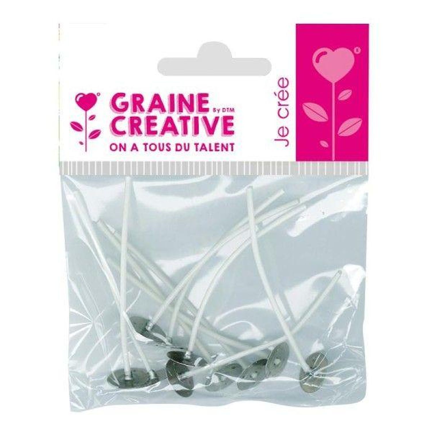 Voici 20 mèches à bougie de taille standard (7 cm) avec supports (diamètre 1,5 cm) pour confectionner vos bougies vous-même.