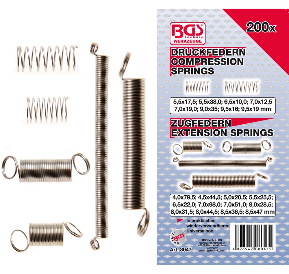 200 RESSORTS DE TRACTION ET COMPRESSION ASSORTIMENT BGS TECHNIC