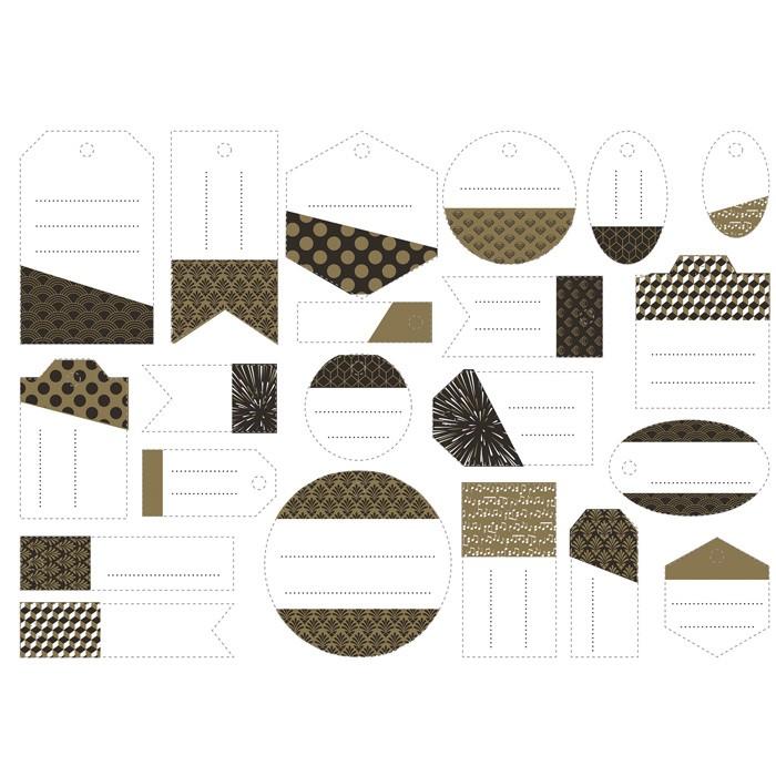 Libellé 21 étiquettes perforées - noir, doré & blanc