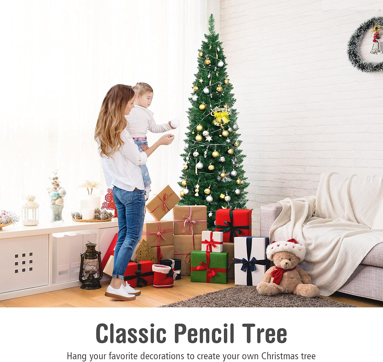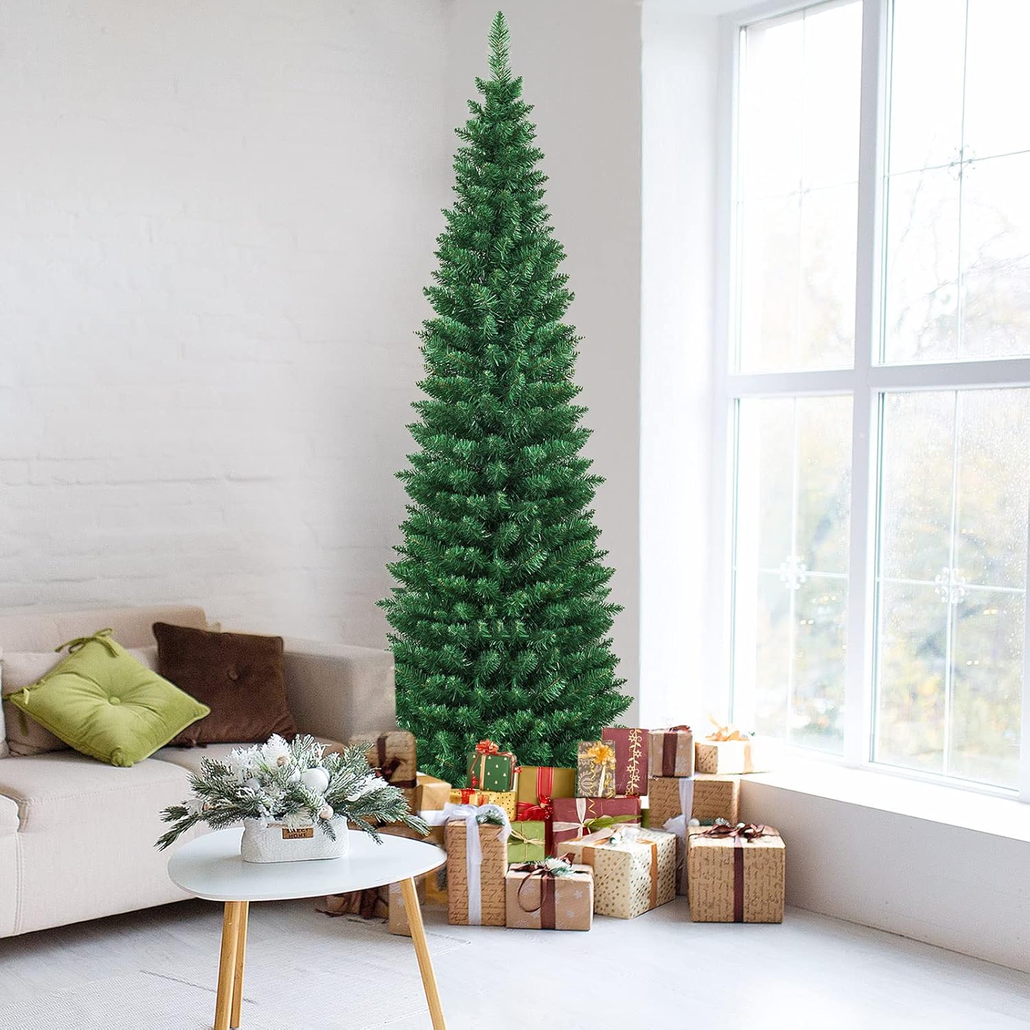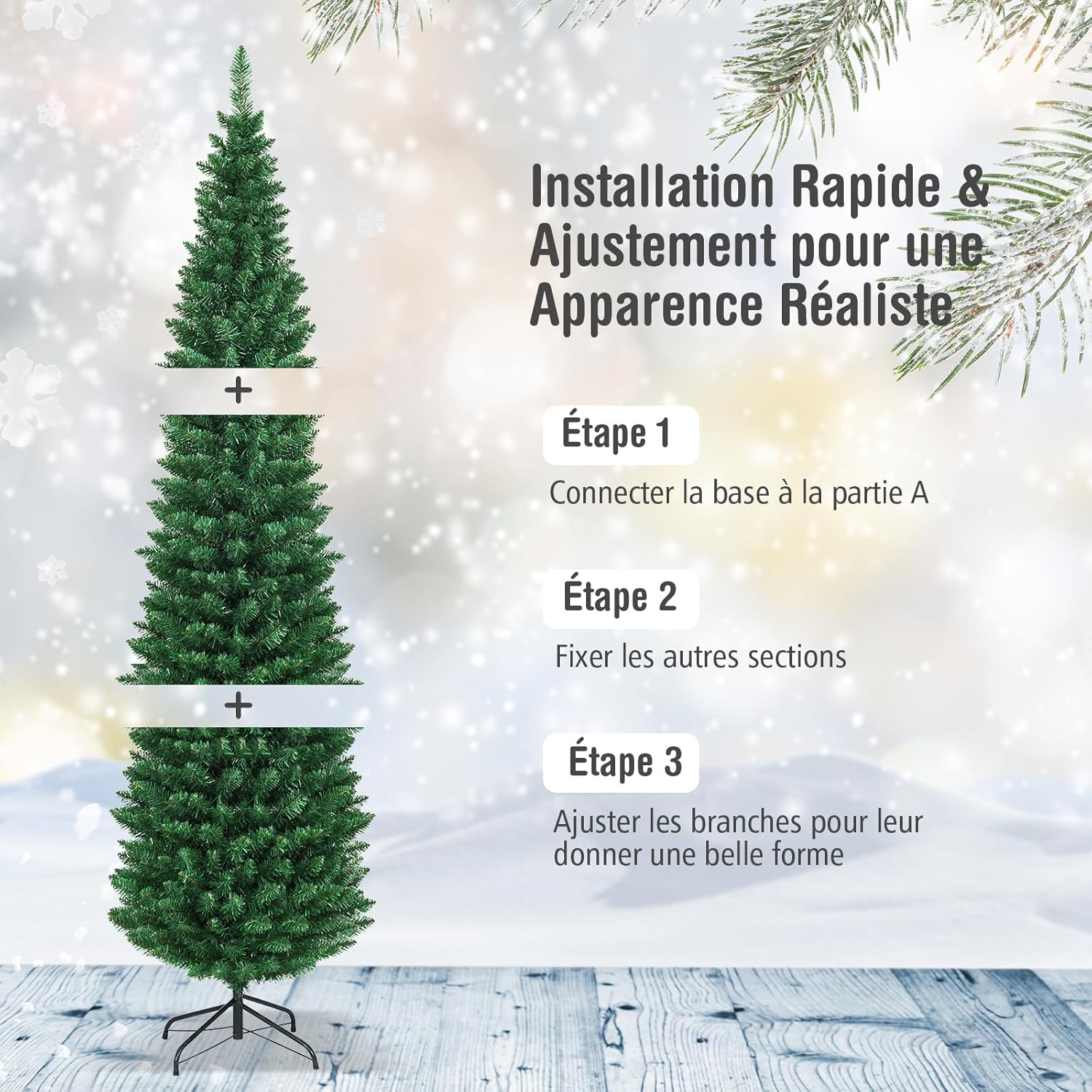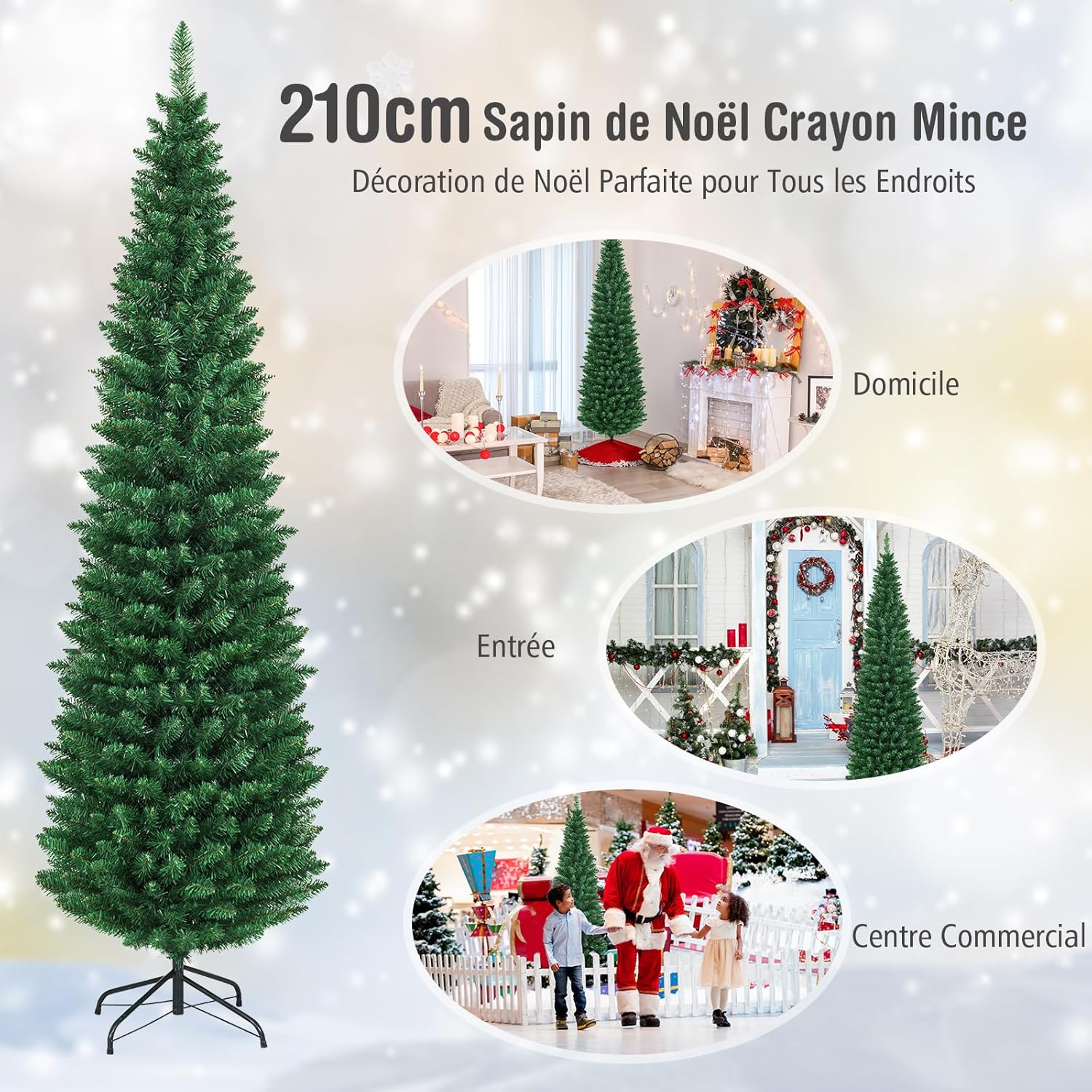 | Libellé | 210cm sapin de noël artificiel forme crayon réaliste, arbre de noël pvc ignifuge construction solide,vert |