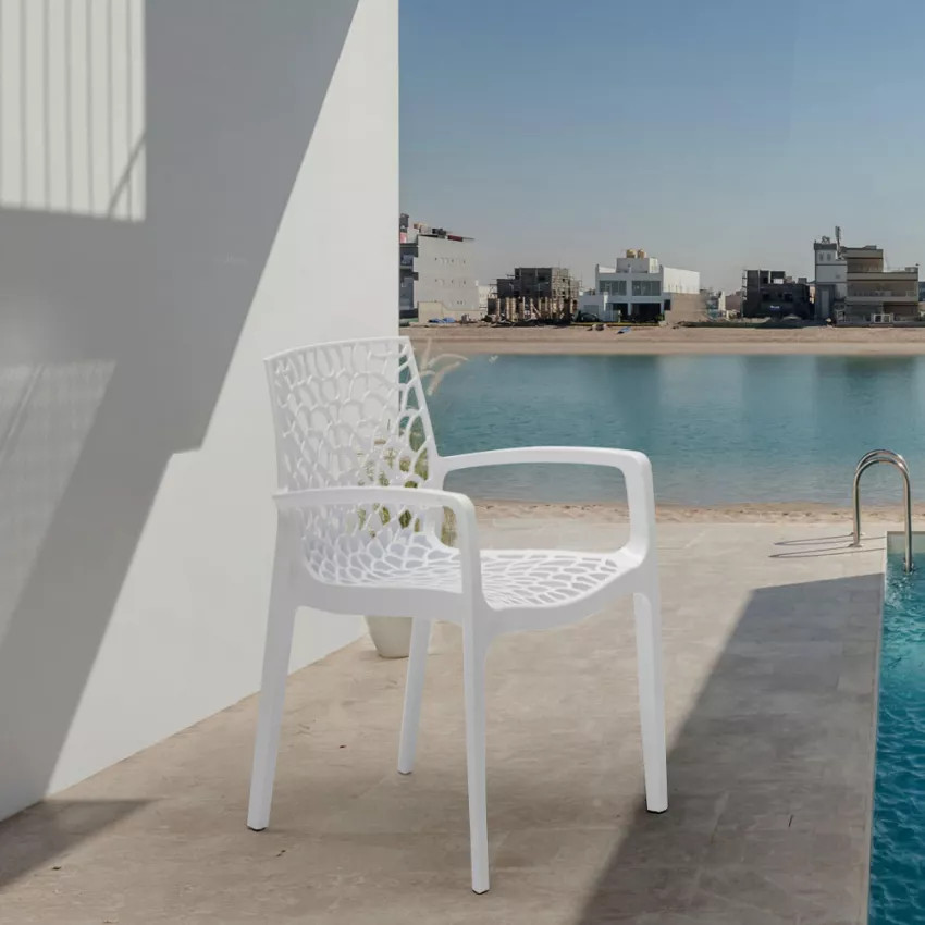 Revitalisez votre espace avec la chaise de jardin à accoudoirs en polypropylène au design moderne, la chaise prisée par les connaisseurs. Rehaussez votre confort avec une touche d'élégance !