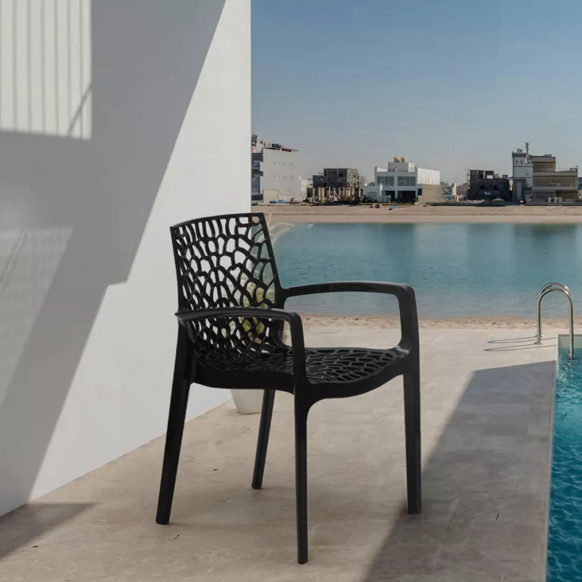 Revitalisez votre espace avec la chaise de jardin à accoudoirs en polypropylène au design moderne, la chaise prisée par les connaisseurs. Rehaussez votre confort avec une touche d'élégance !