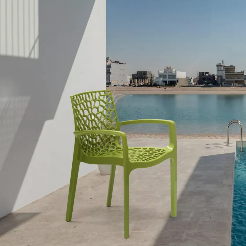 Revitalisez votre espace avec la chaise de jardin à accoudoirs en polypropylène au design moderne, la chaise prisée par les connaisseurs. Rehaussez votre confort avec une touche d'élégance !