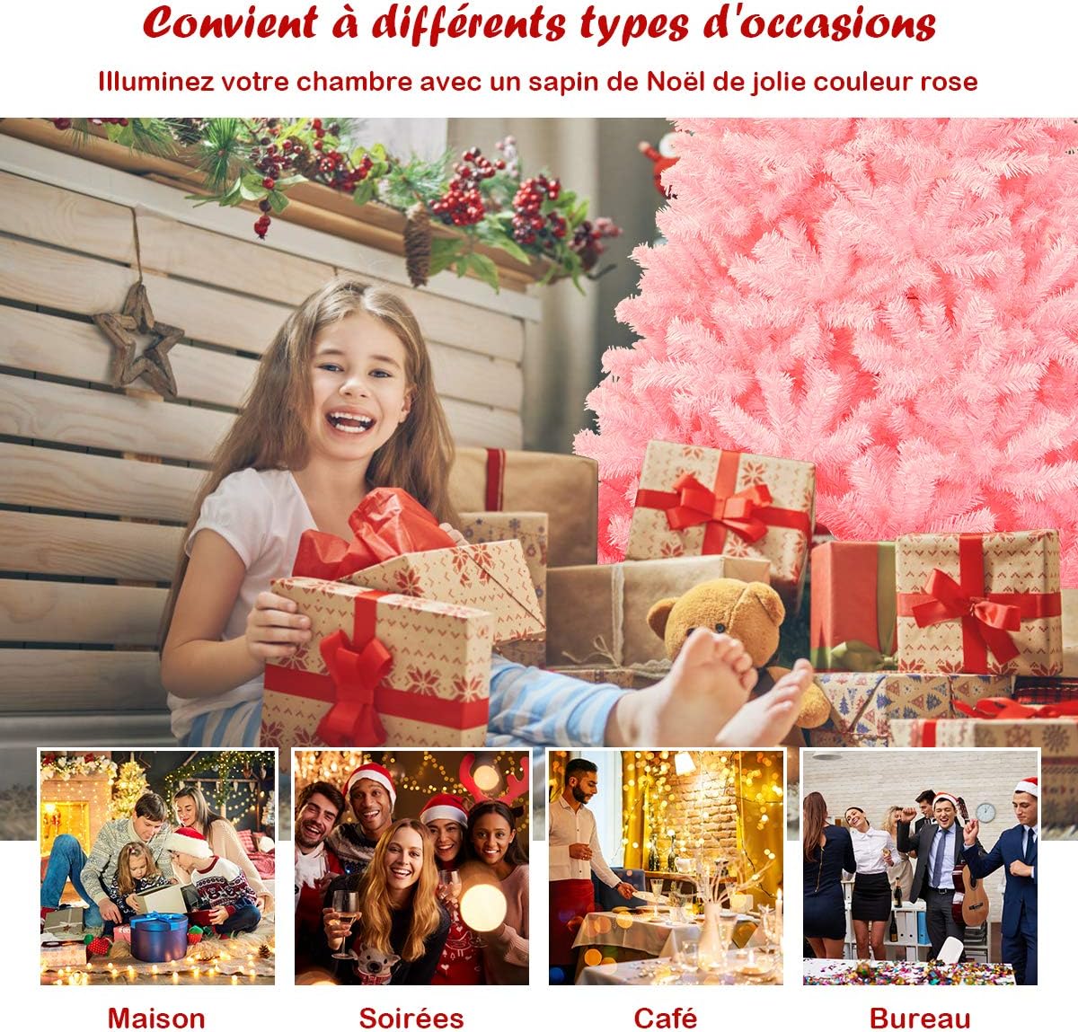 - Largement Utilisé: Un bel arbre de Noël est une nécessité pour passer un Noël éblouissant. Que ce soit à la maison, en entreprise ou en centre commercial, notre magnifique sapin de Noël rose peut jouer un très bon rôle décoratif.