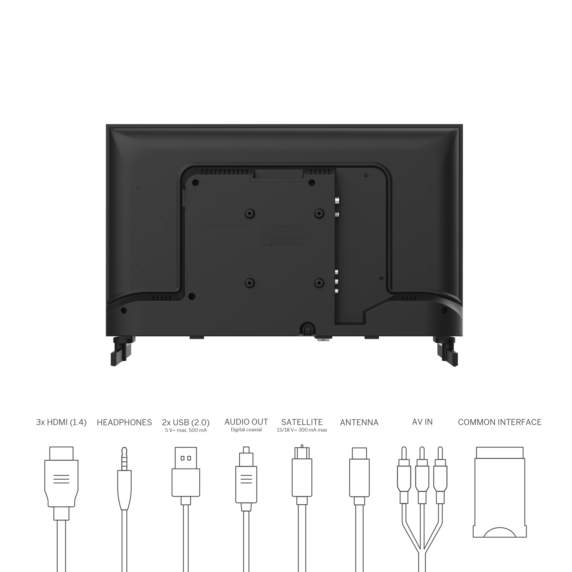 Informations sur le produit "Thomson Easy TV 24" HD" Pour ceux qui recherchent la simplicité. Le téléviseur Thomson TV 24" HD vous offre une expérience TV simple et agréable à utiliser. Qu'il soit connecté par câble (DVB-C), par satellite (DVB-S2) ou par la TNT (DVB-T2), votre téléviseur Thomson est prêt pour tout type de réception. Avec le triple tuner intégré et le slot CI+ pour les programmes cryptés, aucun matériel supplémentaire n'est nécessaire. La télécommande ergonomique facilite la navigation dans une interface conviviale. Ouvrez le guide électronique des programmes pour obtenir des informations sur les programmes en cours et ceux à venir. Si vous ne voulez pas manquer votre talk-show préféré, réglez simplement la minuterie. Le bouton "FAVORIS" vous donne un accès rapide à vos chaînes de télévision préférées. Et tandis que vous profitez de vos programmes préférés dans une ambiance tamisée, les boutons rétroéclairés de la télécommande aident à garder un œil sur tout. Grâce à son design élégant et sans cadre, vous pouvez vous concentrer pleinement sur l'action à l'écran, tandis que la technologie Dolby Audio ajoute une expérience audio dynamique. Et si vous voulez garder le son pour vous, utilisez sa prise casque!