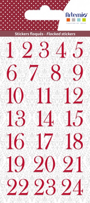 Le set d'autocollants 24 chiffres floqués Artemio donnera une touche personnalisée à vos calendriers de l'Avent, vos créations DIY ou home déco. Les chiffres rouges mesurent de 0,5 à 2 cm. Coordonnés à nos collections, ils seront le détail original de vos réalisations. Le set appartient à la collection Barok créée par Artemio.La collection Barok illustre une ambiance élégante et sophistiquée à l'italienne en mettant en avant les volutes et les motifs détaillés à travers les coloris rouge, blanc, gris, bordeaux et les matières velours, le foil argenté et le brillant.