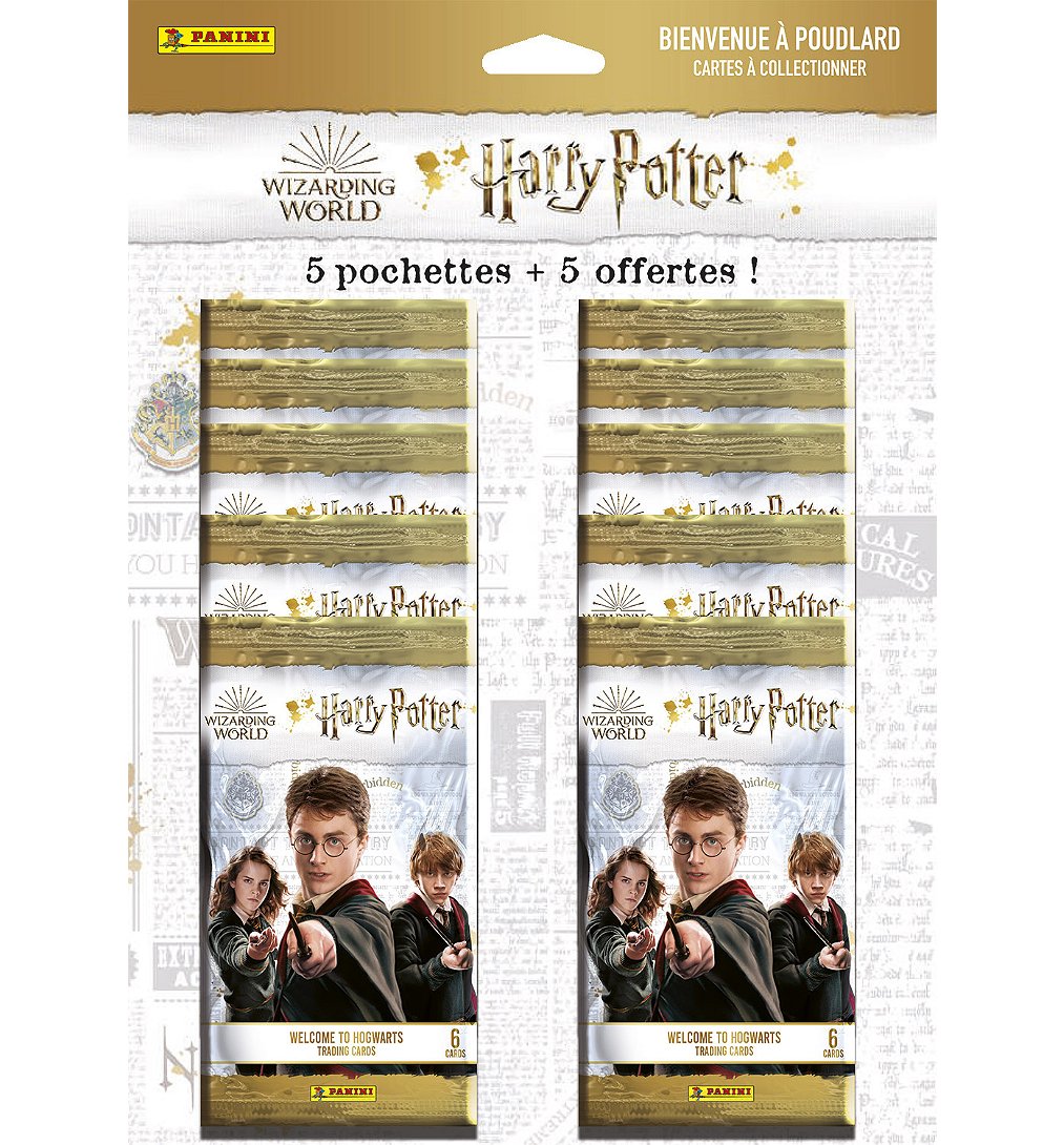 Toute la magie des films dans une collection de cartes ! Après le succès de la collection de Stickers Harry Potter Saga, Panini lance sa première collection de cartes consacrée au plus célèbre des sorciers ! Découvre les lieux et les personnages de l’univers mythiques à travers ce pack contenant 5 pochettes + 5 OFFERTES, soit 60 cartes à collectionner ! Une collection magique contenant 216 cartes dont 60 spéciales avec des effets arc-en-ciel, argentés et dorés pour sublimer les images et 9 cartes en Édition Limitée. Prêts à devenir un sorcier et suivre les cours à Poudlard ? *cartes réparties aléatoirement dans les pochettes, visuels non contractuels.
