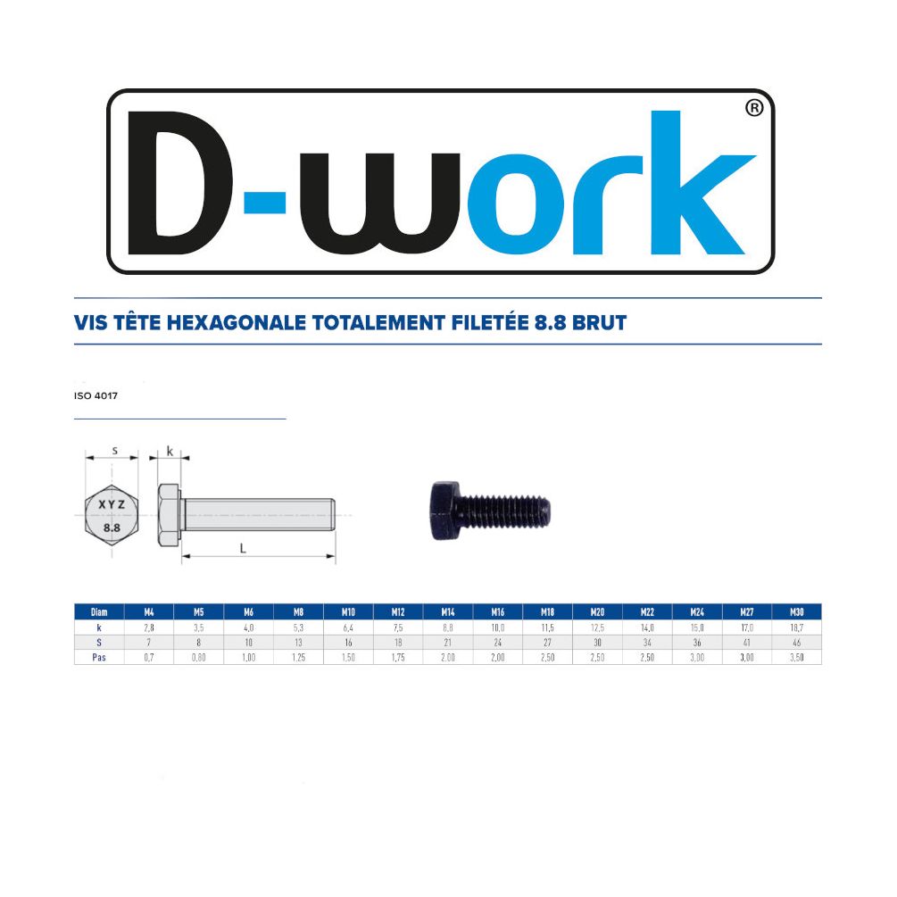 | Libellé | 25 Vis Métaux Tête Hexagonale F/Total 16 x 80 mm - 4017 - 8.8 - Brut - D-Work |