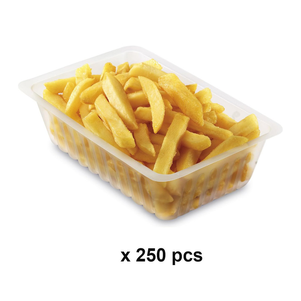 La fabrication en polystyrène (PS) confère à ces barquettes une transparence totale qui garantit une mise en avant attrayante de la fraîcheur des aliments. Polyvalentes, elles permettent de conditionner une grande variété de mets, qu'il s'agisse de salades composées, de frites, d'accompagnements ou de plats cuisinés individuels. Leur conception sans couvercle et leur format empilable assurent un gain de place considérable dans votre espace de stockage ou sur votre plan de travail, optimisant ainsi votre organisation quotidienne lors des services intensifs.