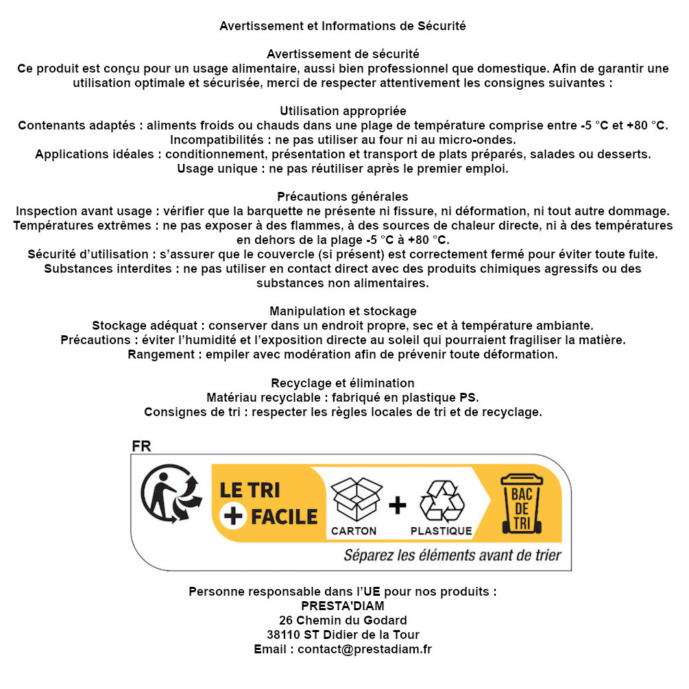 D-Work a élaboré ces barquettes pour répondre aux exigences techniques du secteur alimentaire. Elles offrent une amplitude thermique allant de -5°C à 80°C, les rendant aptes à accueillir des préparations froides comme chaudes. Légères mais robustes, elles résistent aux manipulations fréquentes tout en restant économiques. La conformité aux normes de sécurité alimentaire est au cœur de la conception de ce produit, assurant hygiène et fiabilité pour le consommateur final. Choisir cet équipement, c'est opter pour une solution de conditionnement performante qui respecte les standards de qualité professionnelle.