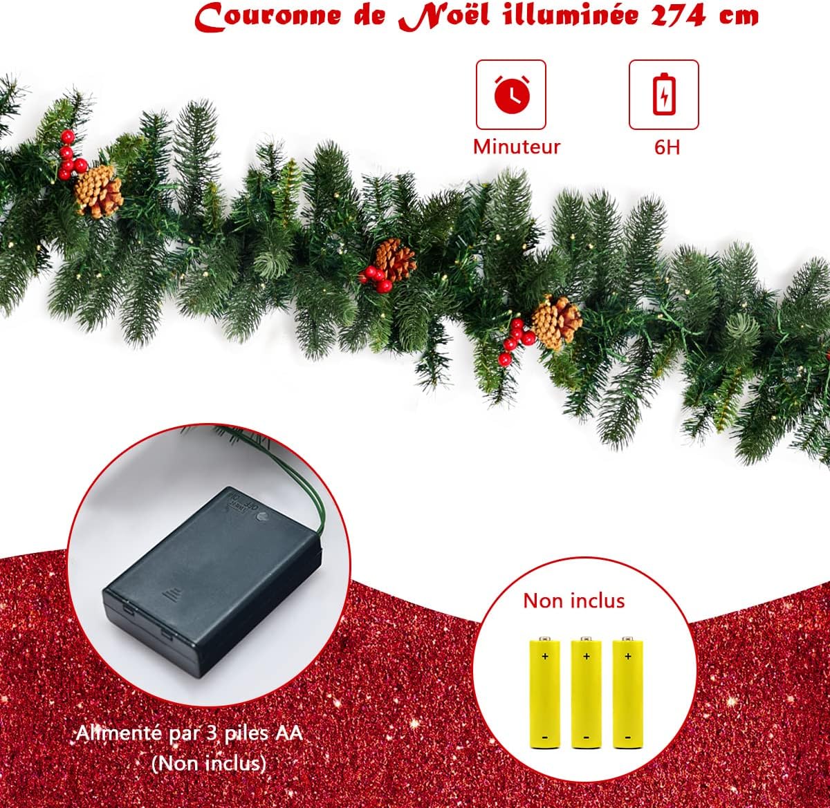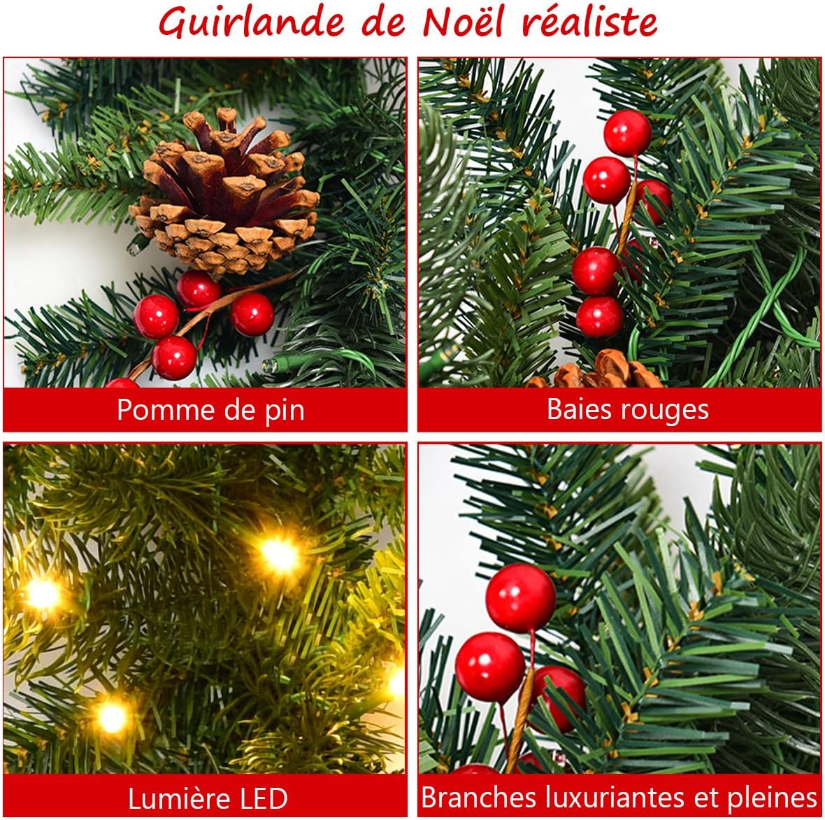 | Libellé | 270cm guirlande de noël artificielle avec led et décorations escaliers cheminée réaliste baies de houx |
