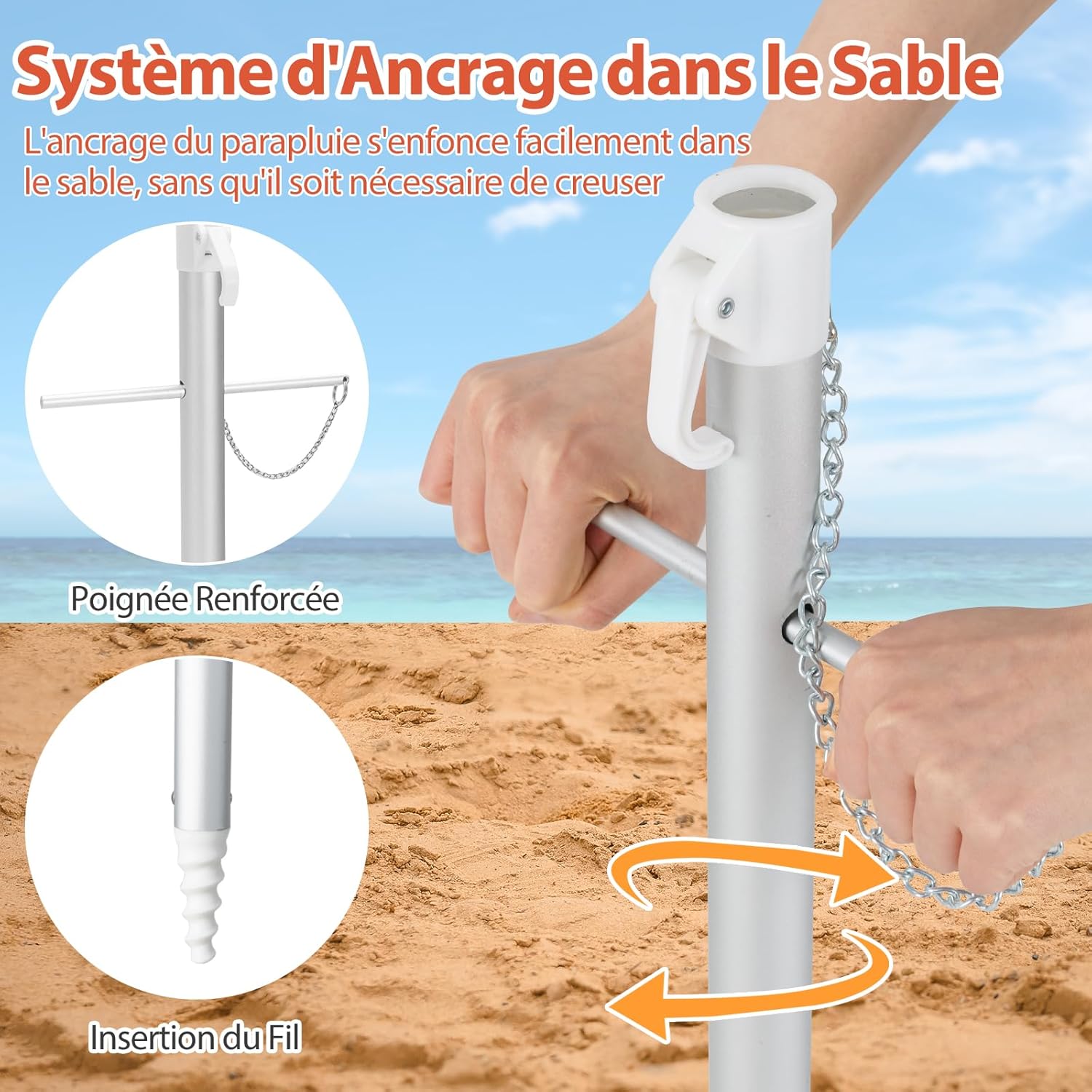 • Parasol Anti-UV : Vous recherchez un parasol de qualité supérieure pour vos voyages à la plage? Notre parasol est une solution parfaite pour vous. Il a un revêtement UV argenté à l'intérieur pour une protection solaire supplémentaire.