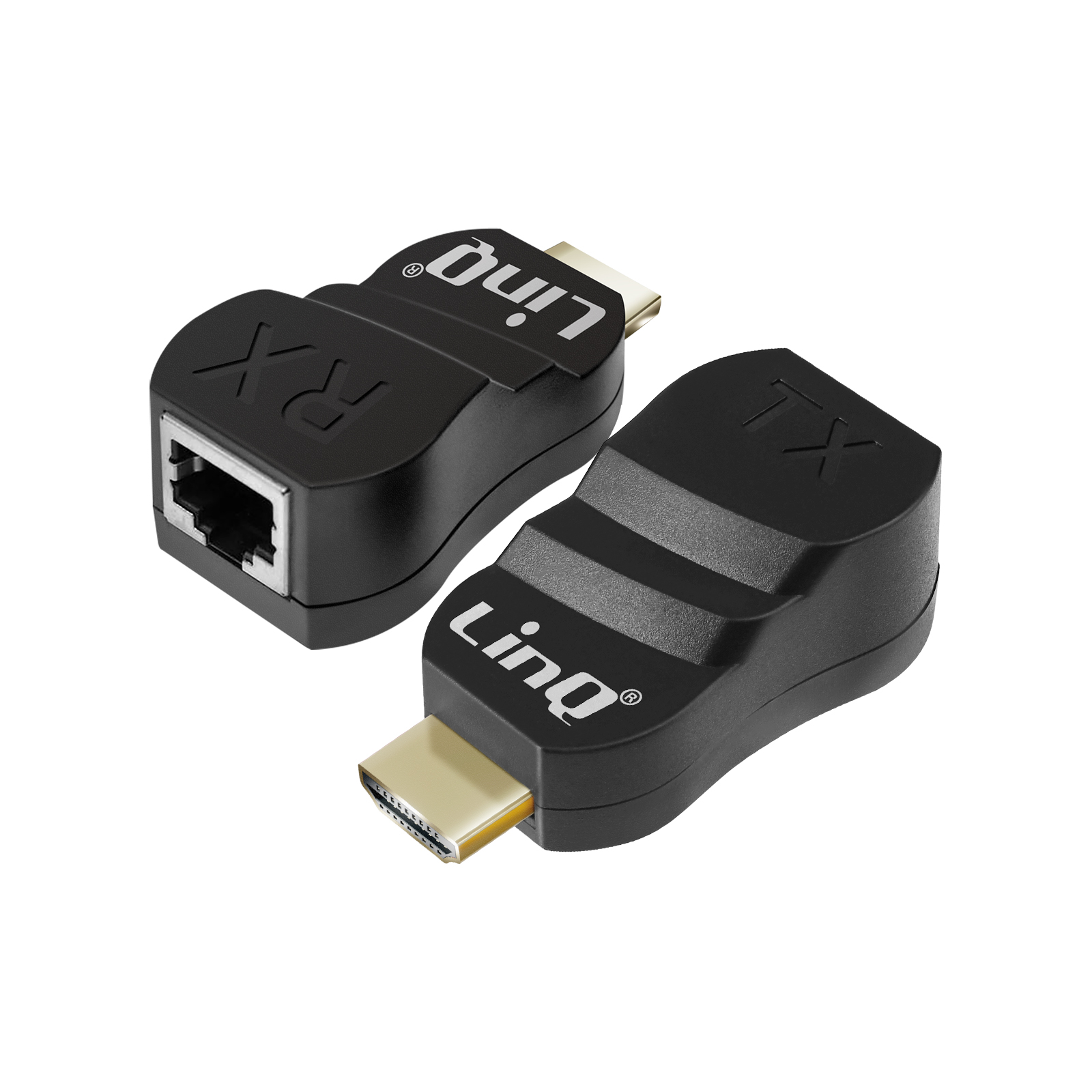 2x Adaptateurs d'extension HDMI vers Ethernet signés LinQ. Permettent de relier des écrans HDMI distants via un câble Ethernet (non inclus). Supporte les câbles Ethernet de Catégorie 6 ou 6e. Format vidéo 3D / HDTV. Résolution 1080p. Portée 30 mètres.