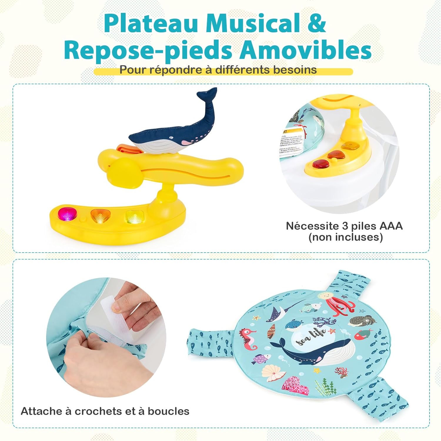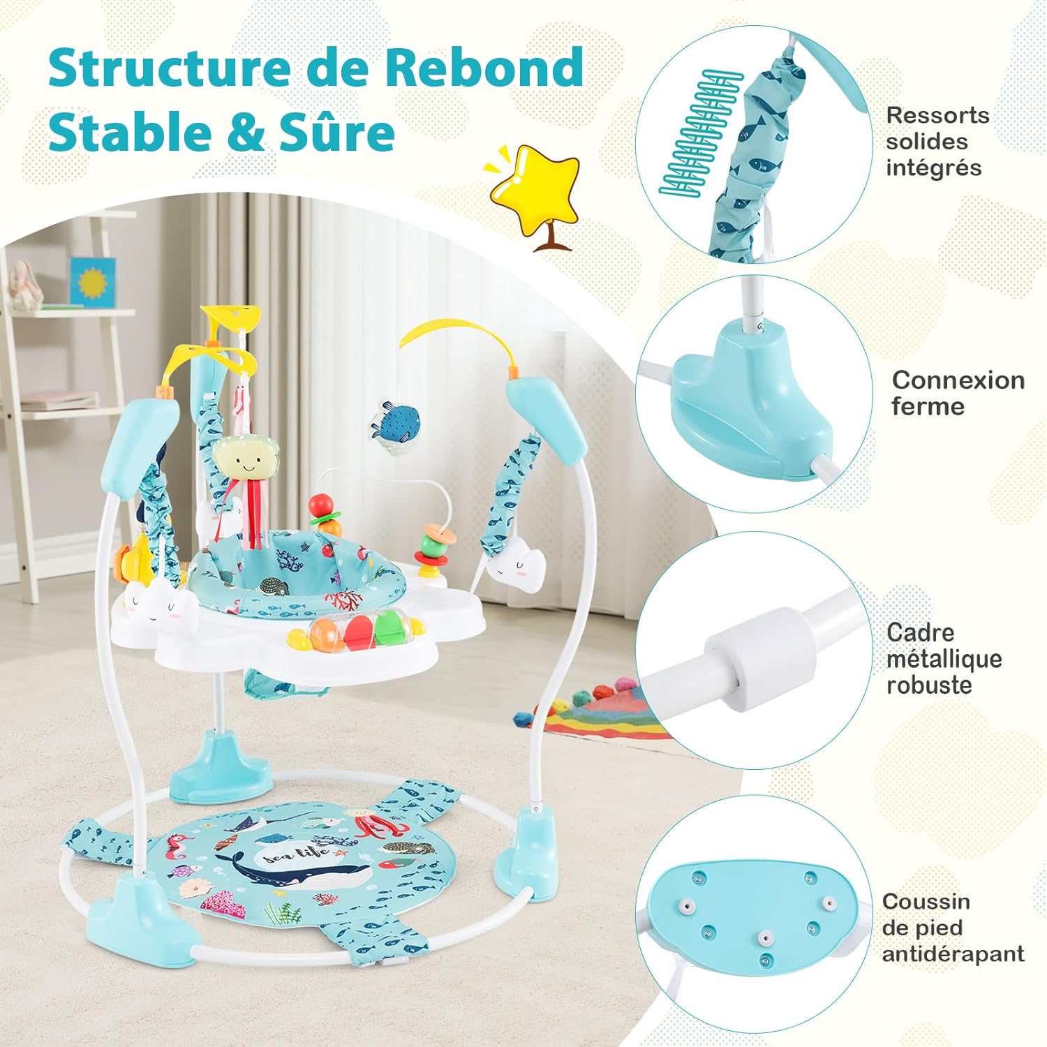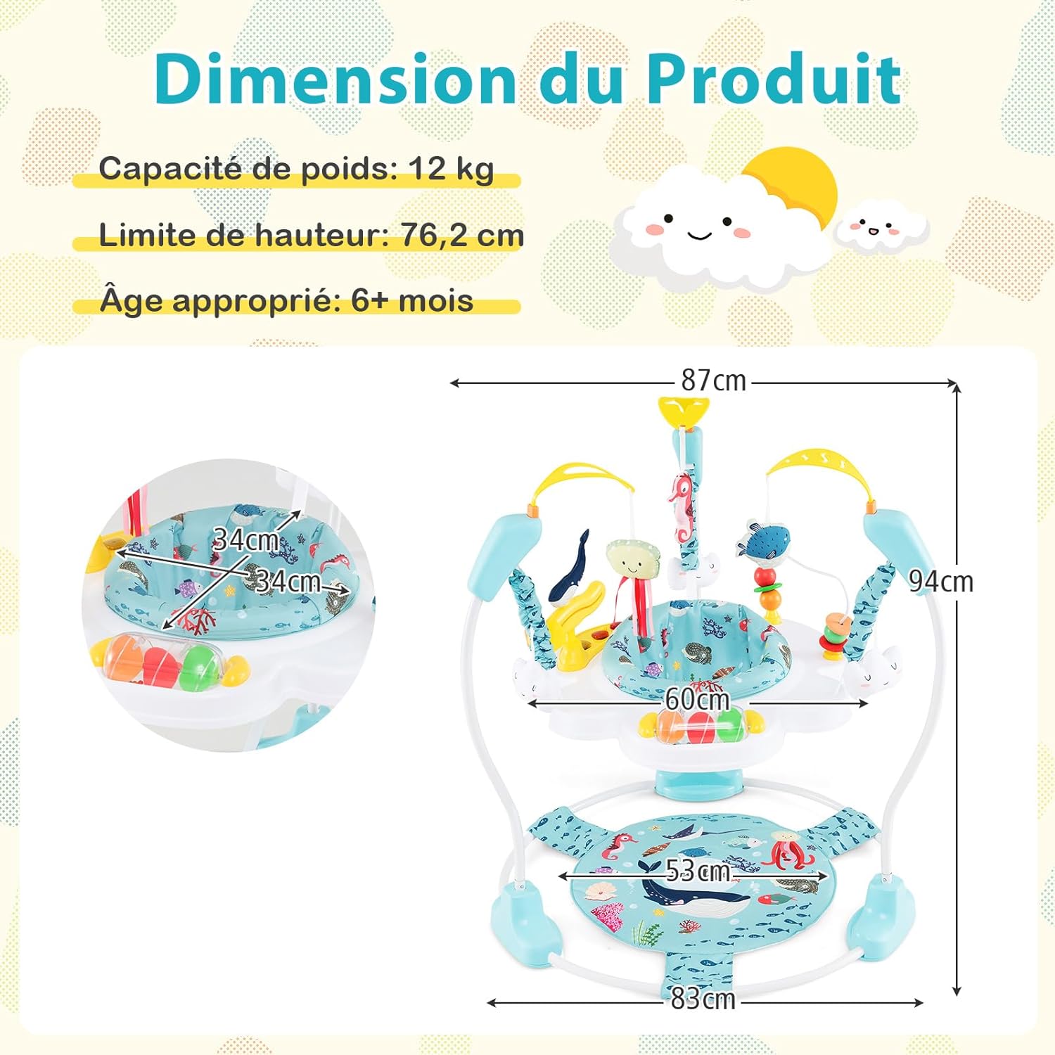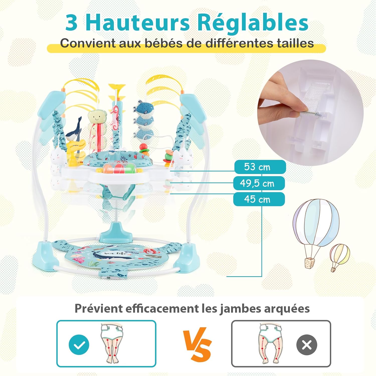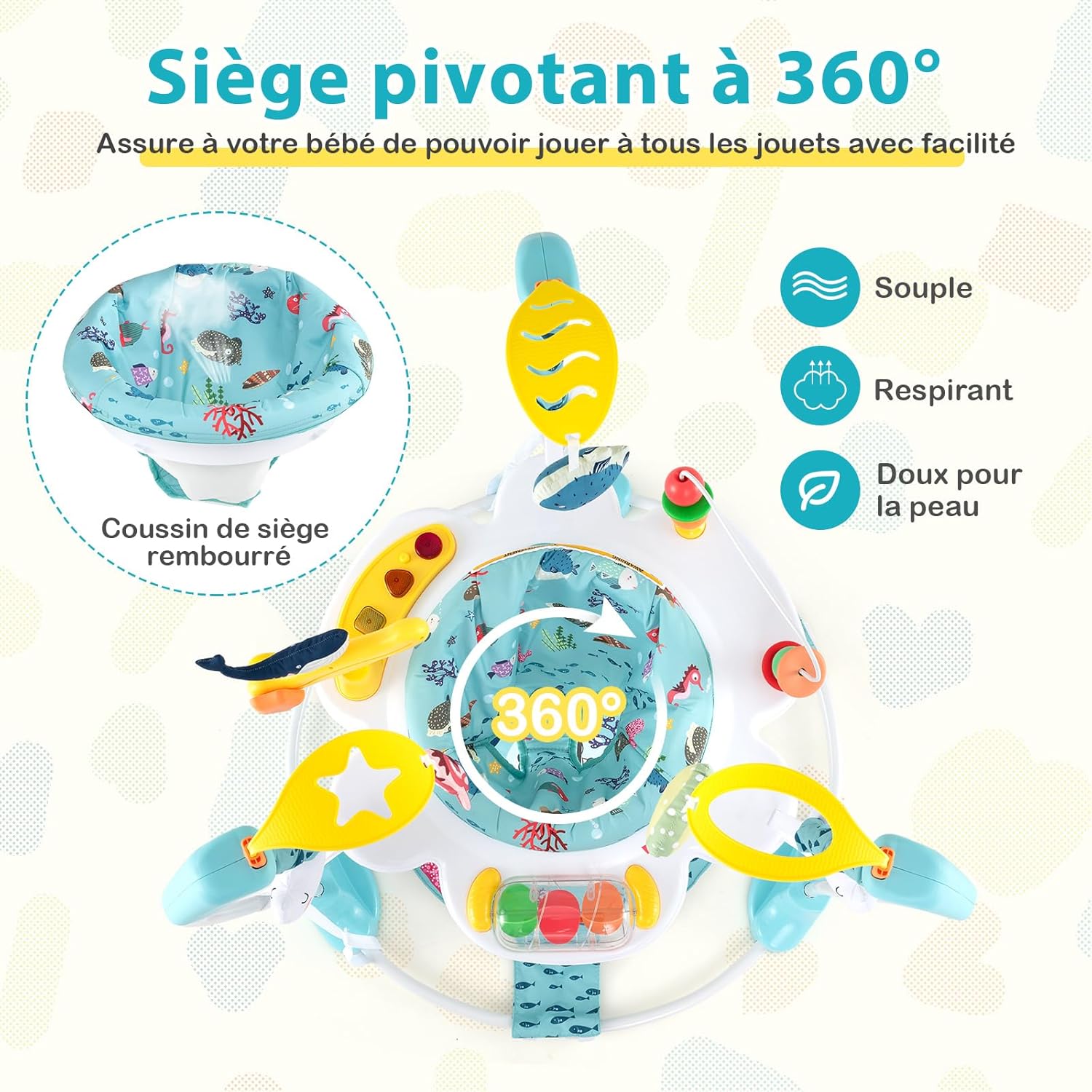 | Libellé | 3 en 1 centre d'activités bébé trotteur avec siège réglable en hauteur rotatif, jumperoo bébé bleu clair |