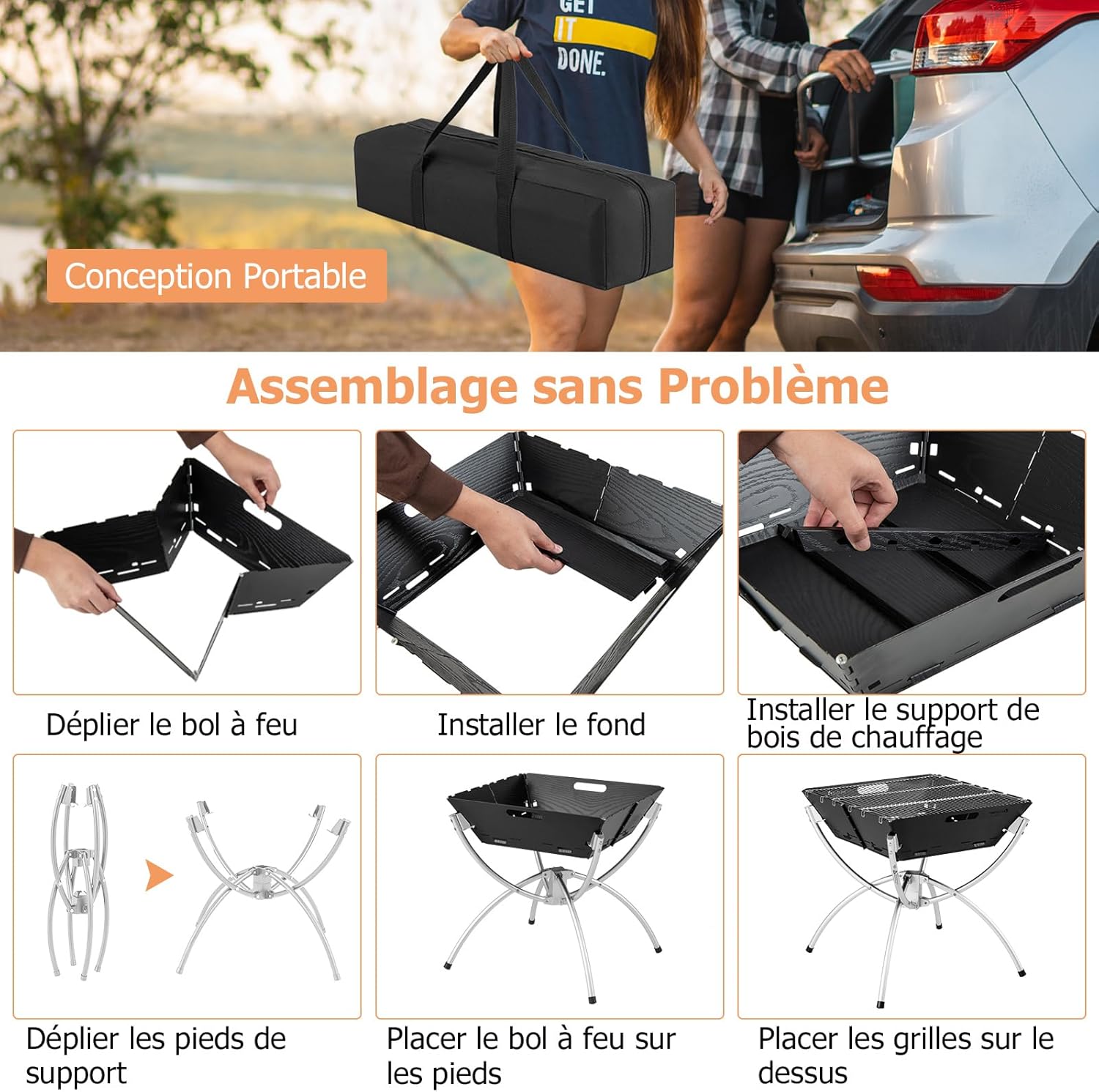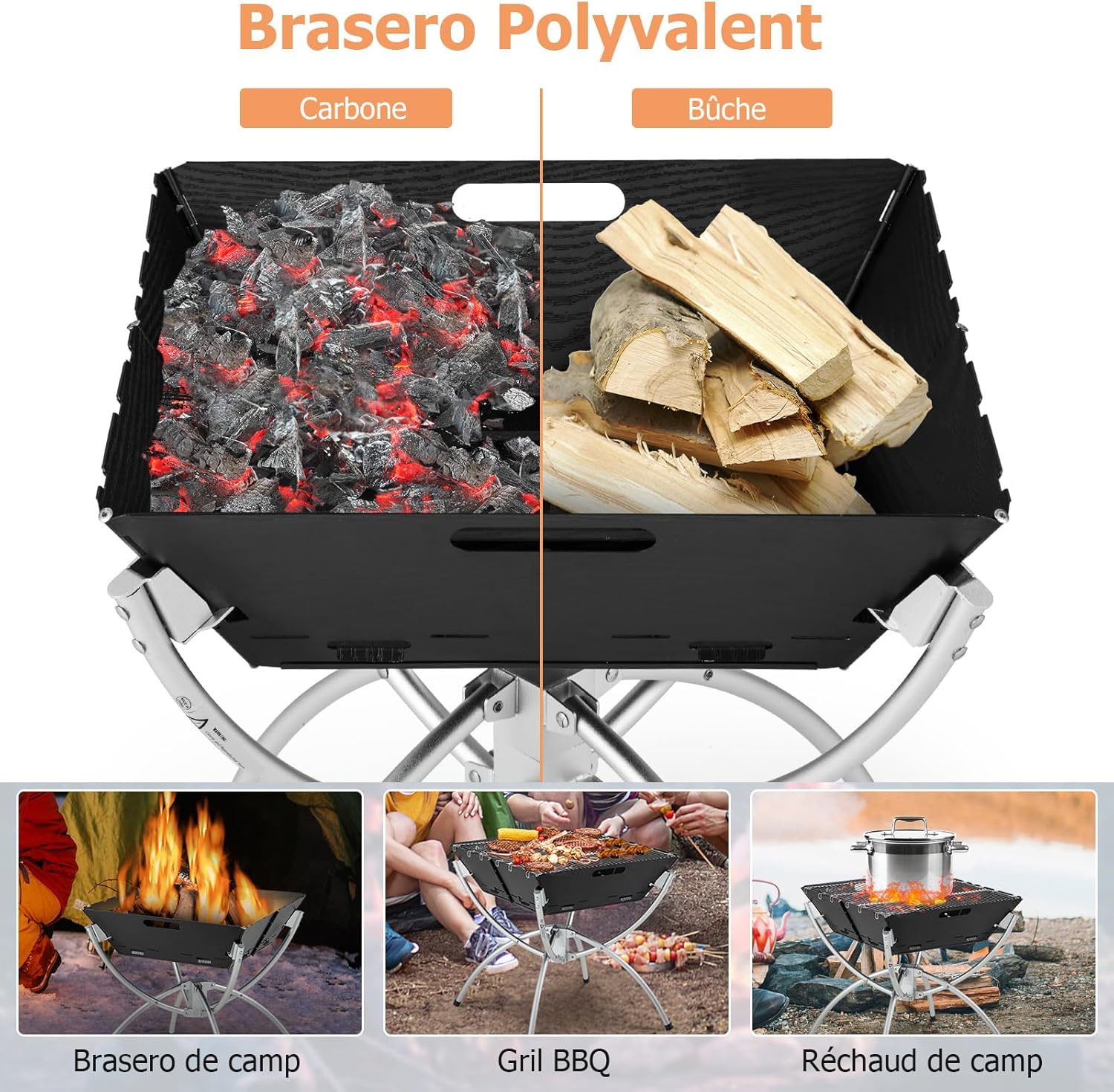 | Libellé | 3 en 1 foyer à bois pliable extérieur, basero barbecue de camping pliable pour cuisine grilles en acier |
