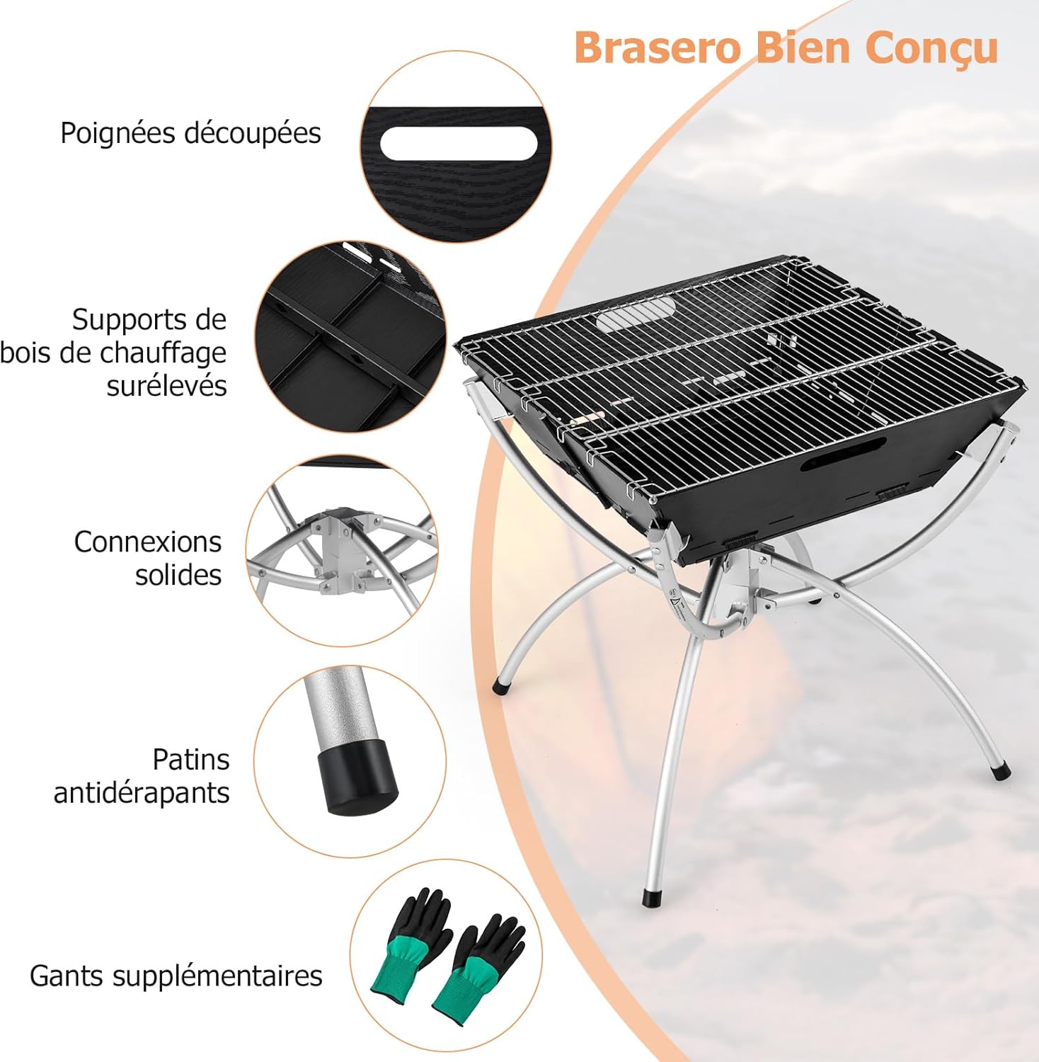 - Portable pour un transport facile : Avec de larges poignées creuses pratiques pour une prise ferme, le grill à bois comprend un sac de rangement, ce qui peut économiser des efforts et faciliter les déplacements. Il est parfait pour le jardin, la cour, le parc et le bord de la piscine pour la cuisine en plein air et les aventures en camping.