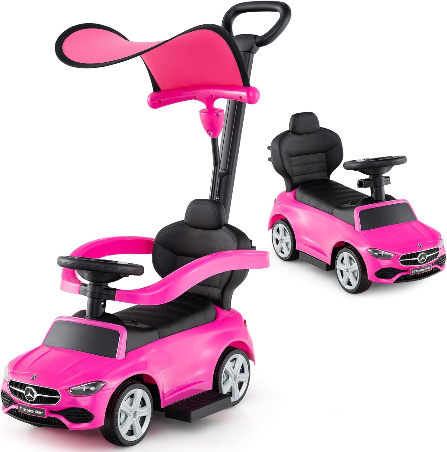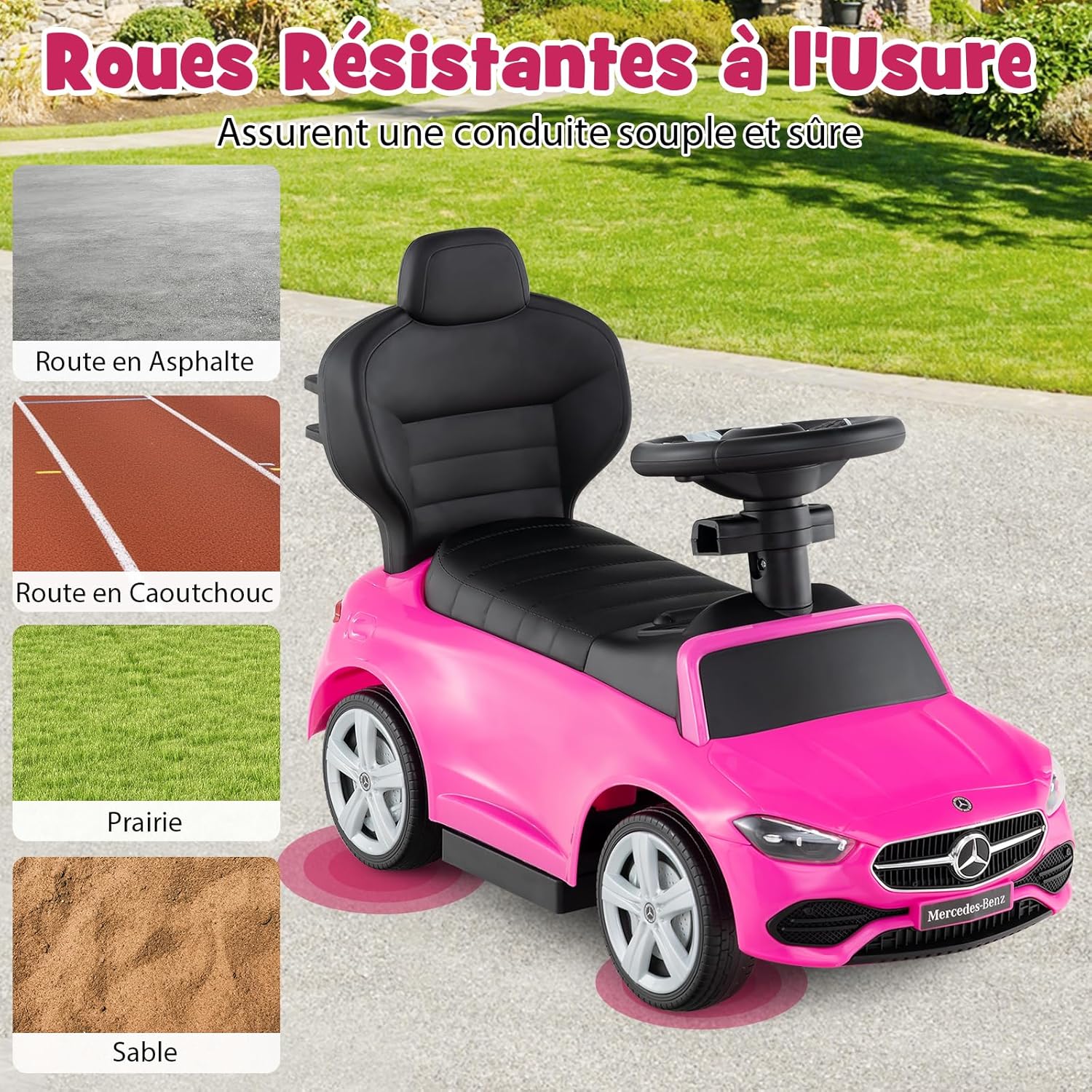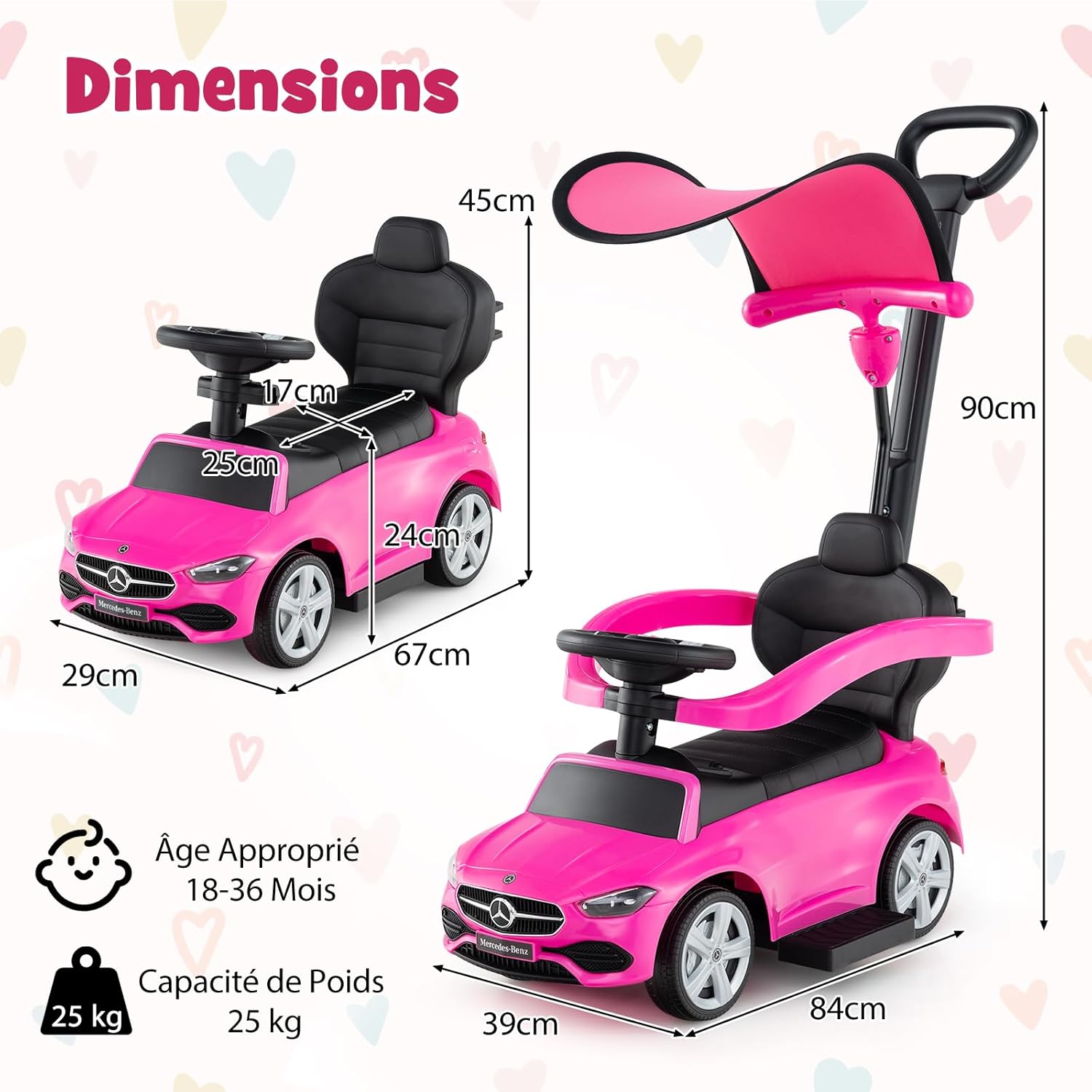 | Libellé | 3 en 1 porteur bebe mercedes-benz pour tout-petits, voiture à pousser avecauvent réglable, rangement,rose |