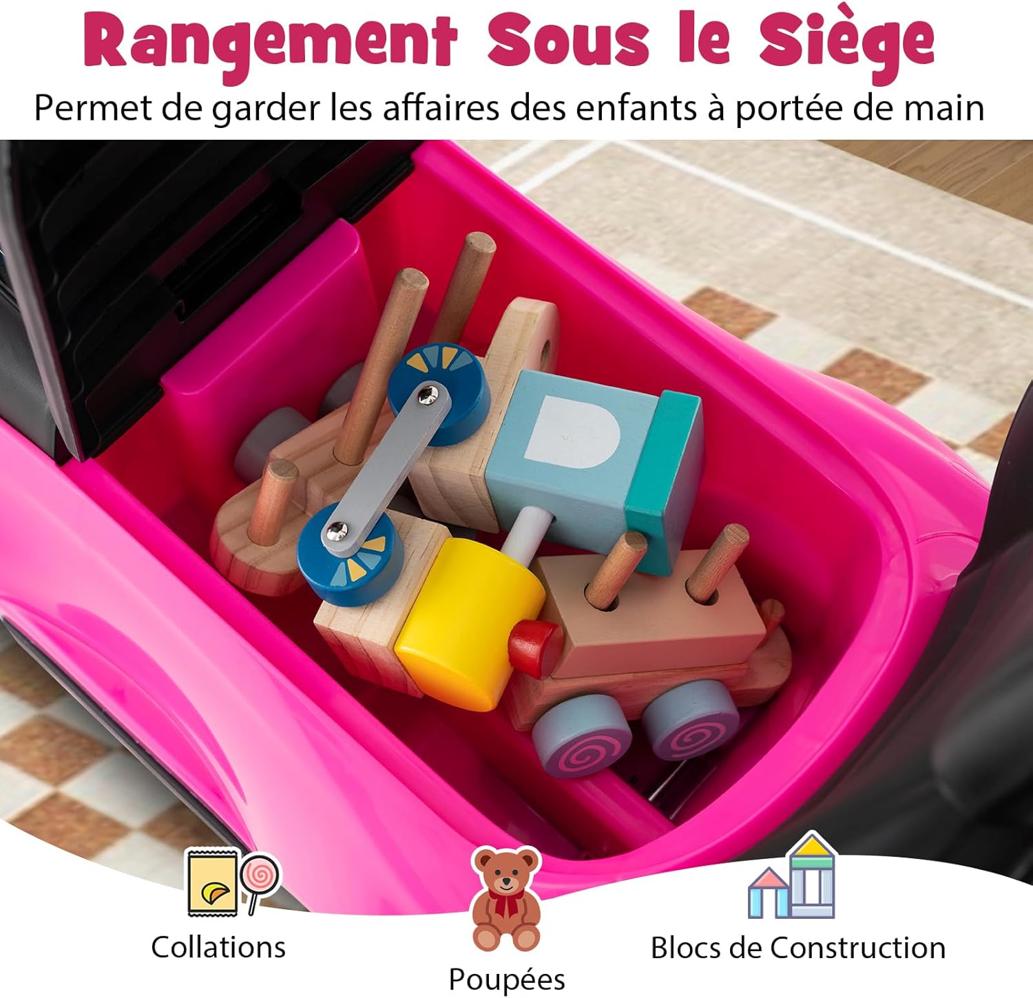- Expérience de conduite engageante : Conçue avec une poignée de poussée à 32° et un volant ergonomique, cette voiture pied au sol invite les parents et les enfants à se lancer dans des trajets passionnants. Le volant émet des sons de moteur et de klaxon, créant une ambiance divertissante pour les petits.