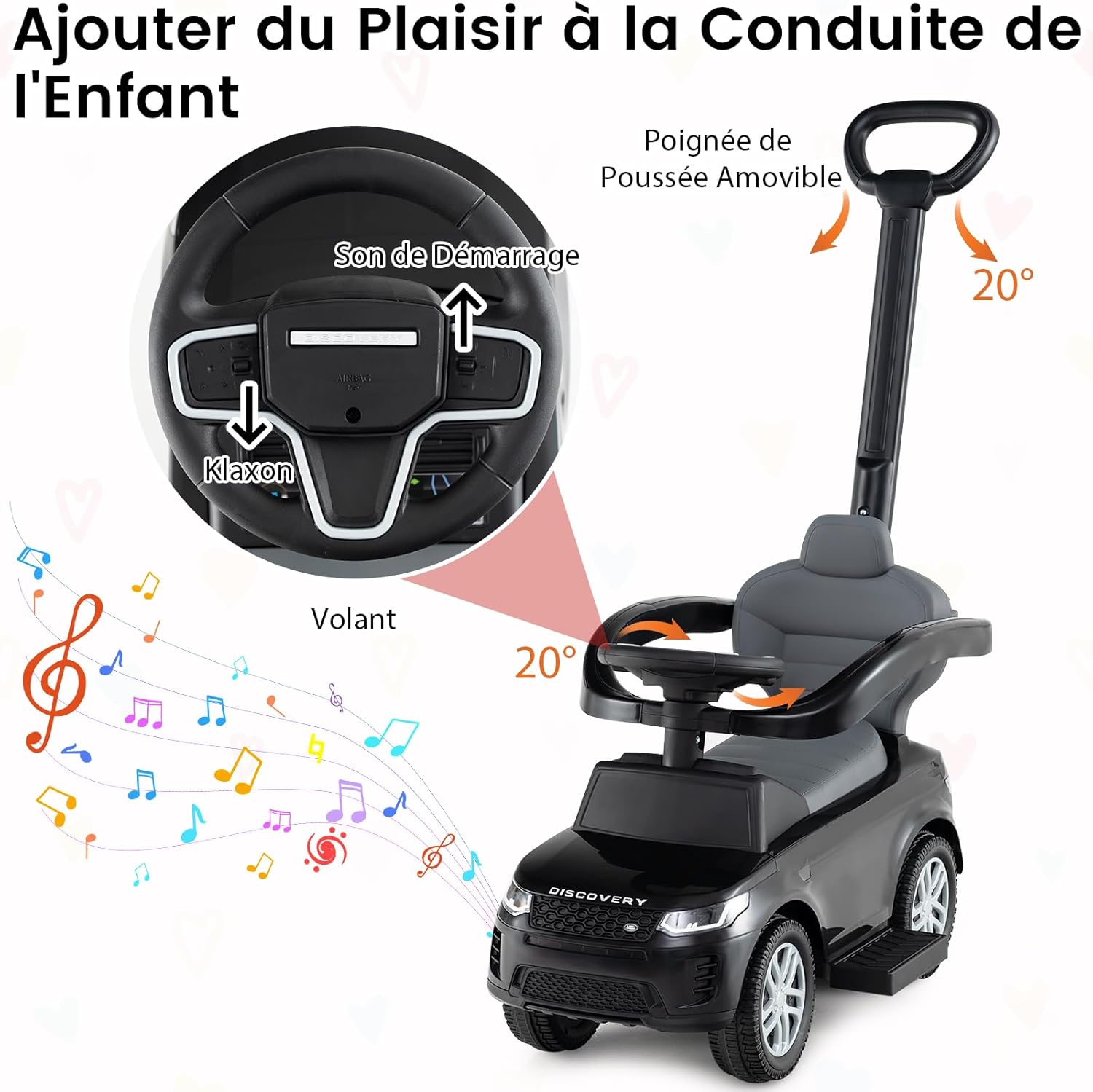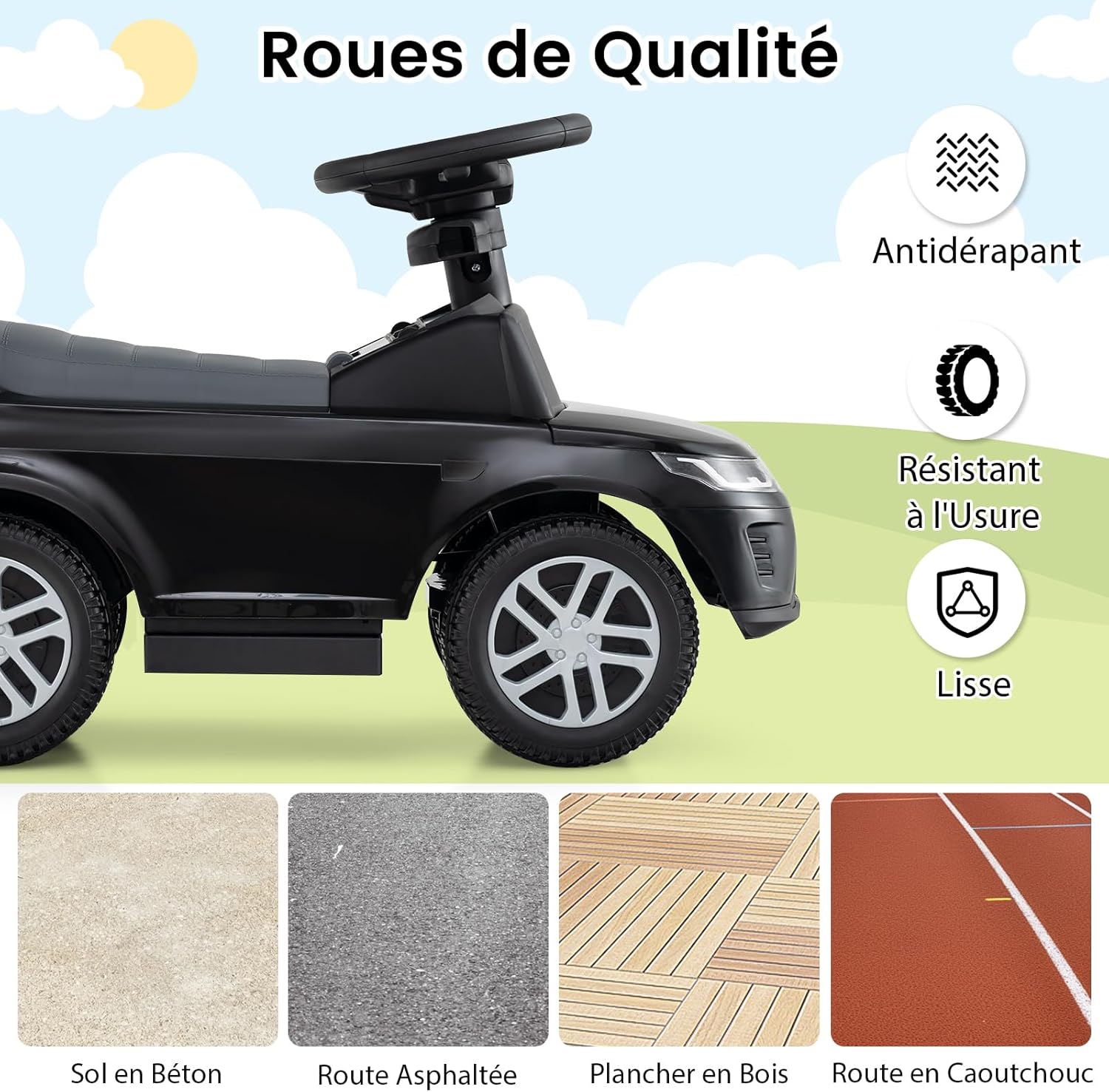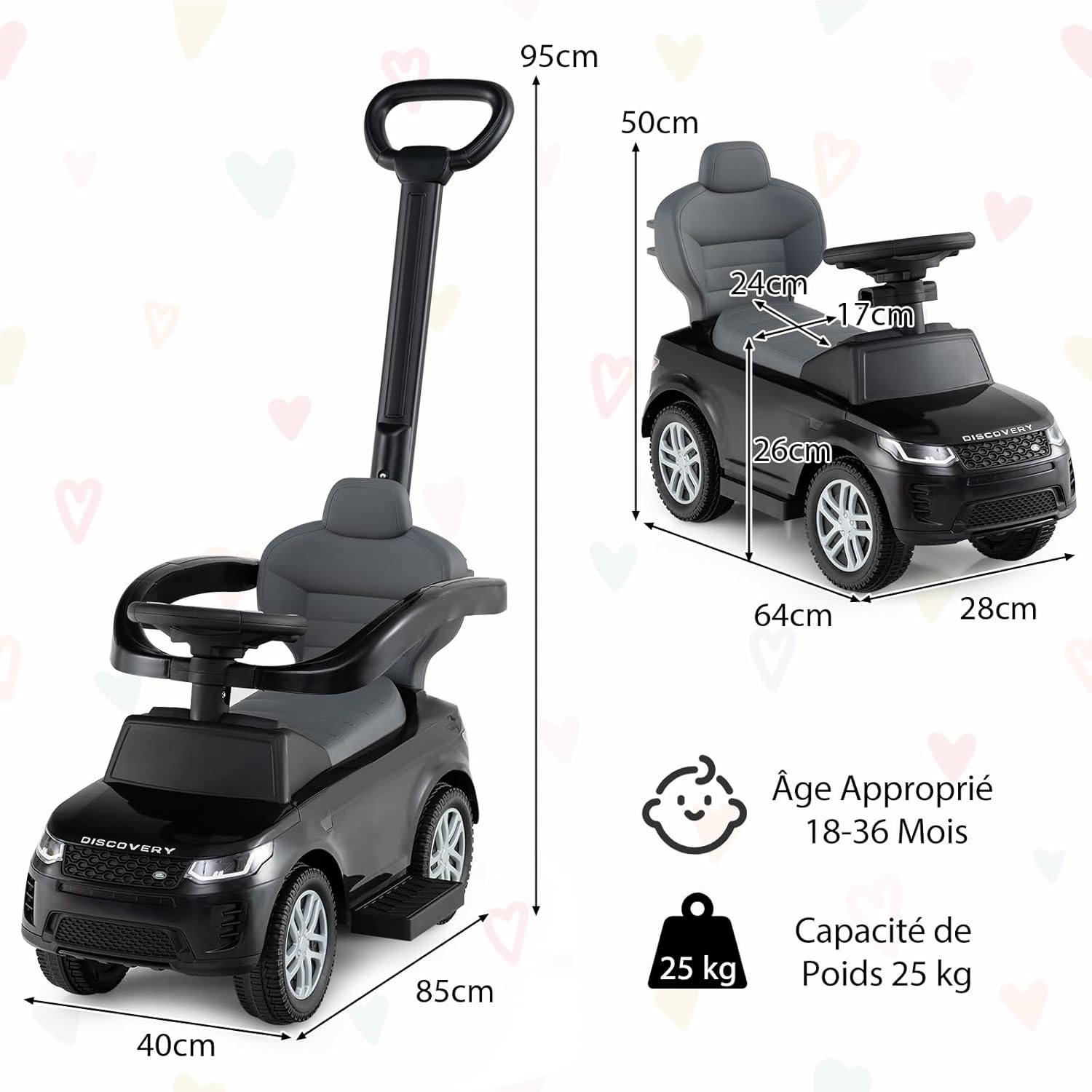 - Design élégant, cadeau parfait : La voiture de marche Land Rover sous licence présente un design distingué, en faisant un cadeau exceptionnel. Son look sophistiqué associé à des fonctionnalités amusantes en fait le présent idéal pour les tout-petits stylés.