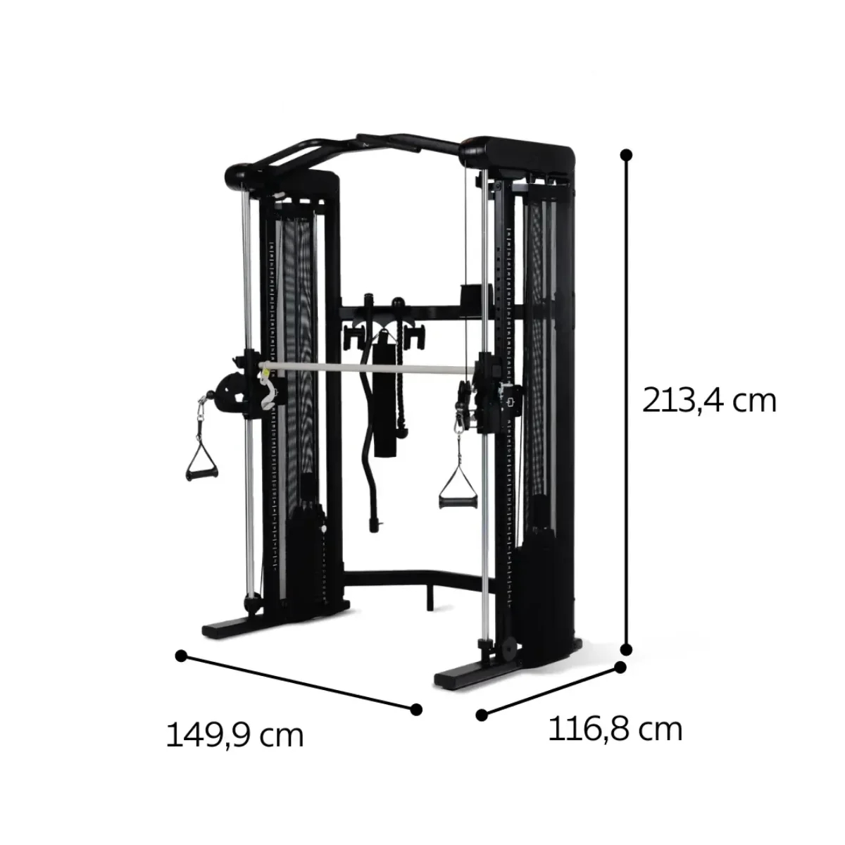 L'appareil d'entraînement à domicile ultime. L'entraînement n'a jamais été aussi simple qu'avec l'entraîneur fonctionnel Centr 3 Home Gym. Cette conception simplifiée combine un entraîneur fonctionnel avec une Smith Machine, afin que vous puissiez effectuer à la fois des mouvements fonctionnels et traditionnels dans une seule pièce d'équipement. Avec deux piles de poids de 75 kg chacune (150 kg au total) et un système de poulies de haute qualité pour des mouvements fluides, le Centr 3 est parfait pour presque tous les exercices fonctionnels ou de musculation. La Smith Bar Selectorized brevetée est une alternative plus sûre à la Smith Bar traditionnelle et offre plus de variété d'entraînement sans perdre de temps entre les exercices. La Smith Bar Selectorized se connecte directement aux piles de poids et dispose d'un système innovant qui vous permet de doubler la résistance sélectionnée, vous permettant de soulever jusqu'à 165 kg de manière sûre et contrôlée. Le Centr 3 est constitué d'un cadre en acier lourd et équipé d'une barre Smith de 9 kg et de câbles commerciaux, ce qui garantit durabilité et stabilité pendant l'entraînement. L'appareil est livré avec une barre de traction intégrée, un support pour téléphone/tablette et 7 accessoires : (2) poignées en D, corde triceps, barre de curl à double crochet, sangle de cheville, ceinture polyvalente et (2x) 2,27 kg. poids supplémentaires. Autres spécifications : Cadre : acier robuste, revêtement en poudre noir mat Poulies : 39 positions de poulie verticales par incréments de 38 mm, poulie pivotante à double réglage Poids maximum de l'utilisateur : 136 kg Multiplicateur de poids : double la résistance au poids lors de l'utilisation de la barre Smith Barre Smith : 9 kg Espace de rangement : espace de rangement intégré pour un banc d'entraînement (disponible en option), des accessoires et une tablette Dimensions (L x l x H en cm) : 116,8 x 149,8 x 213,4 Poids : 286 kg Avec l'entraîneur fonctionnel Centr 3 Home Gym, vous n'avez plus besoin d'investir dans plusieurs équipements et poids, car tout ce dont vous avez besoin pour vous entraîner se trouve dans un seul appareil. C'est le résultat de plus de 20 ans de savoir-faire de la part de l'équipe Inspire Fitness. Adhésion au Centre : Profitez de cet entraîneur fonctionnel Centr grâce au coaching personnel de l'équipe d'experts de Chris Hemsworth. Lorsque vous achetez cette station de musculation, vous recevez un abonnement gratuit de 3 mois à l'application Centr. L'abonnement peut être utilisé sur n'importe quel appareil et synchronisé avec vos appareils portables préférés pour suivre vos progrès. Le coaching Centr offre des moyens illimités d'améliorer votre bien-être total grâce à un entraînement physique, des conseils nutritionnels et des outils de pleine conscience proposés par les meilleurs experts de Centr. Cela comprend des plans de nutrition complets, une méditation guidée et tout ce dont vous avez besoin pour créer un mode de vie plus sain.