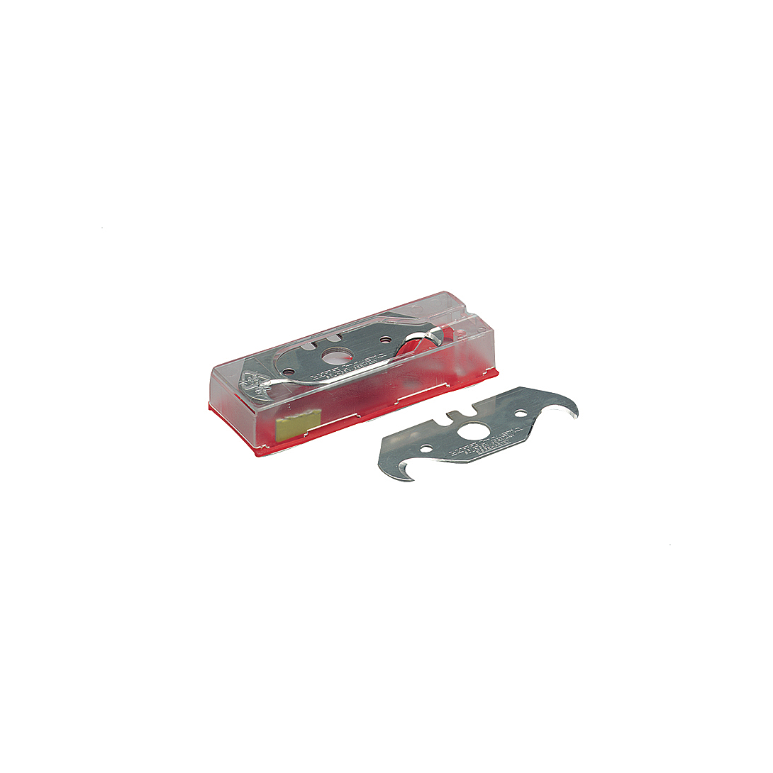 3 lames "croche" pour couteaux et araseur à moquette, pour la découpe des revêtements de sols à l'aide de couteaux à moquette ou araseur, épaisseur : 0,65 mm, acier trempé, étui distributeur.