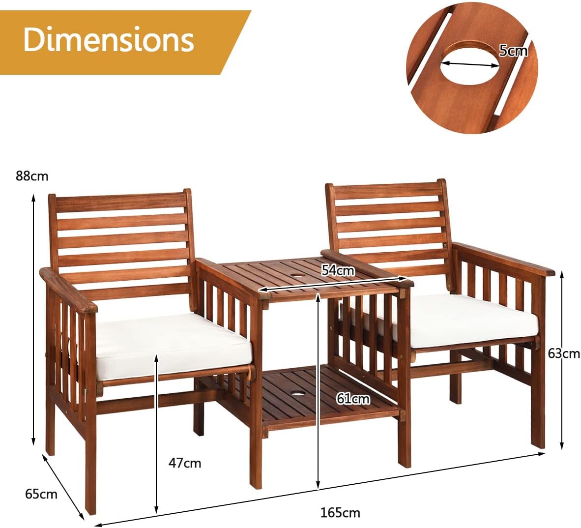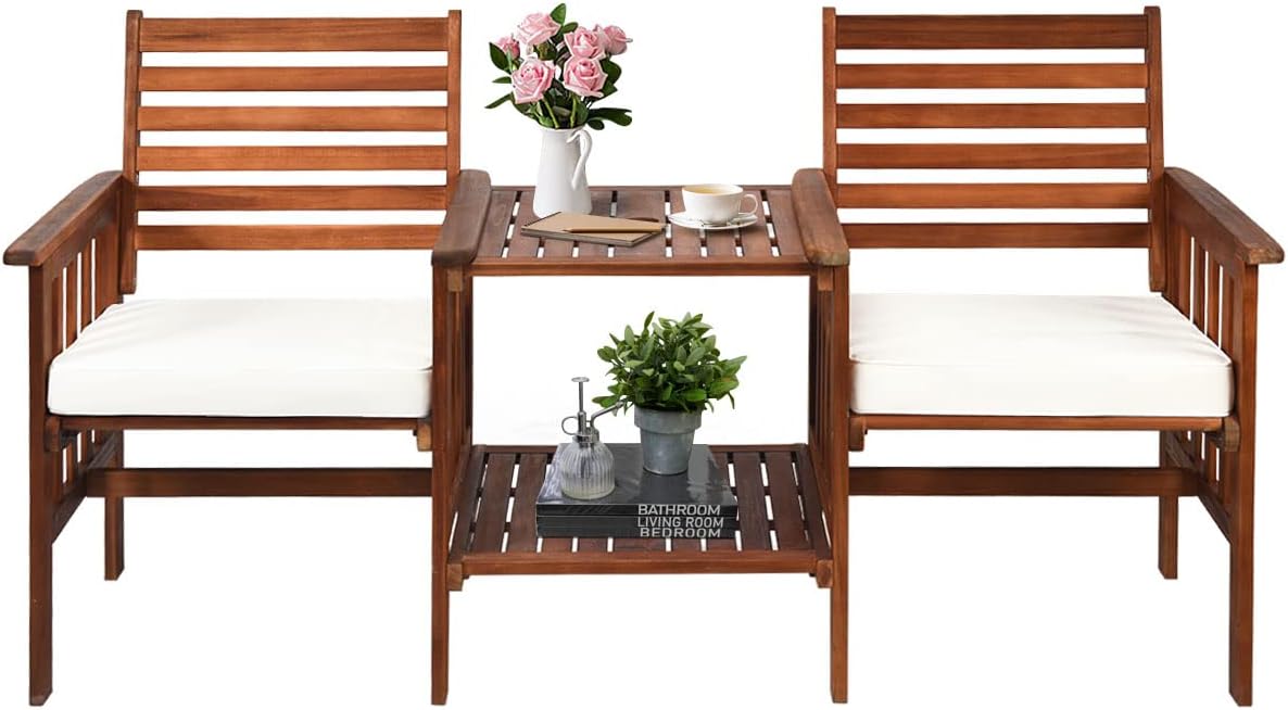 | Libellé | 3 pièces salon de jardin 2personnes en bois d'acacia avec 2 fauteuils 1 table chaises banc de patio blanc |
