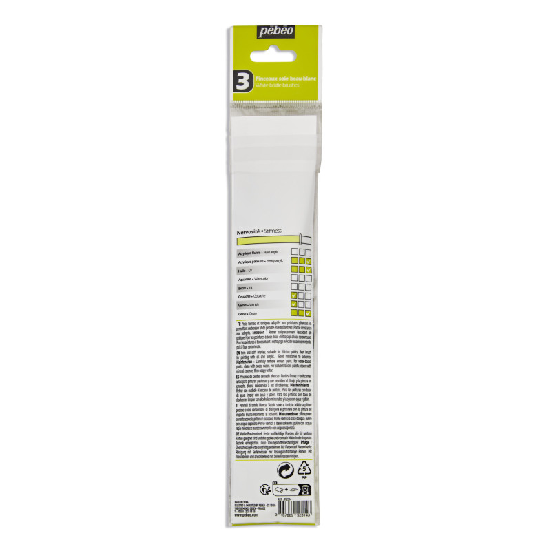 En résumé, les pinceaux plats acrylique et huile n°4, 10, 18 de Pébéo offrent les caractéristiques suivantes :