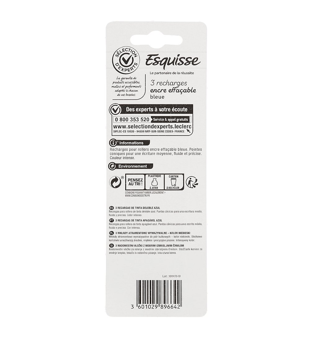 | Libellé | 3 recharges bleues roller effaçable - Sélection d'Experts - Esquisse |