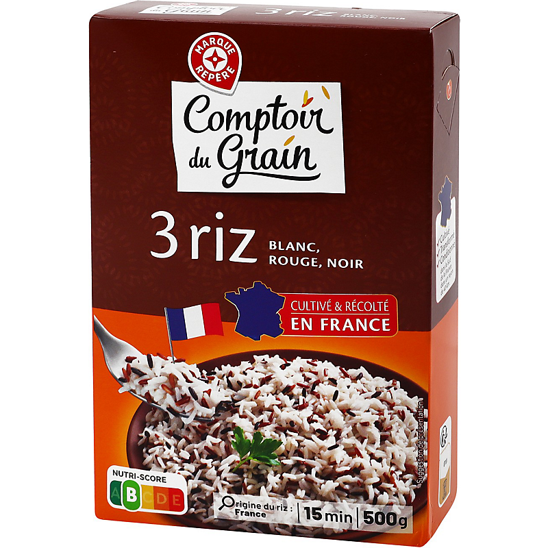 Ingrédients : Riz blanc étuvé 80 %, riz rouge étuvé 15 %, riz noir étuvé 5 %.