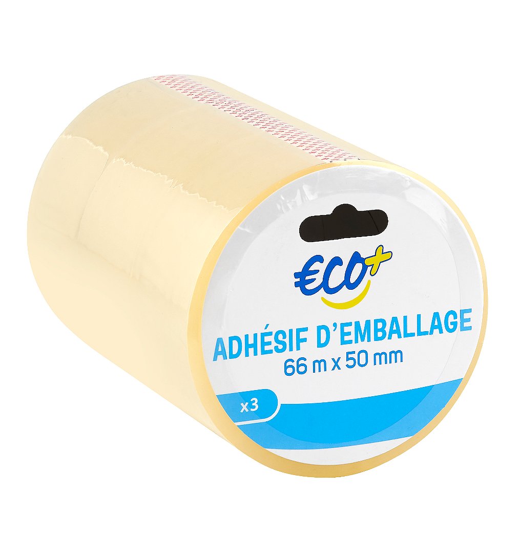 | Libellé | 3 Rouleaux d'adhésif d'emballage transparent, 66 m x 50 mm - ECO+ |