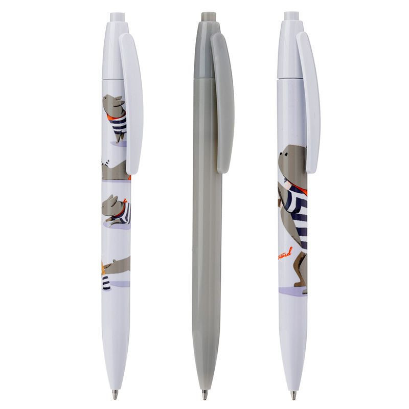 3 stylos à bille - Noir - Pointe fine - Scolaire - Enfant - Chien rigolo - Plastique recyclé