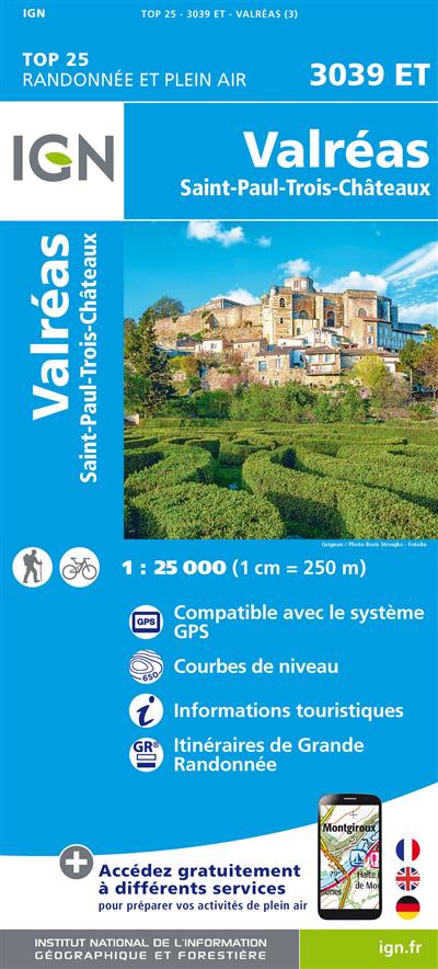 L'indispensable carte de randonnée IGN 3039ET. D'une très grande précision, elle contient tous les détails existants sur le terrain : voies de communication jusqu'au moindre sentier, constructions jusqu'au hangar, bois, arbre isolé, rivière, source... Sans oublier la représentation du relief par des courbes de niveau. Les sentiers balisés et les informations touristiques sont également représentés.
