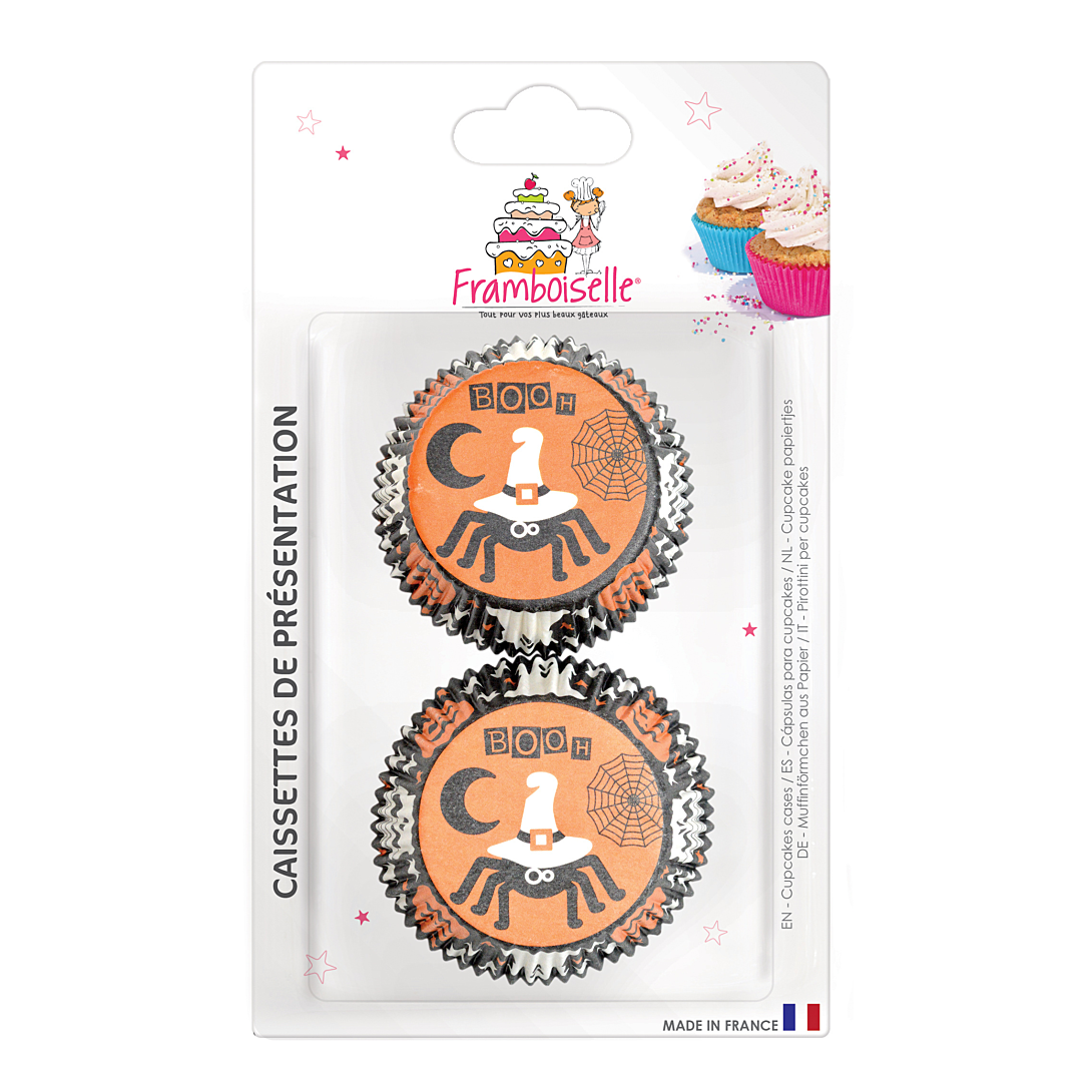 Lot de 36 caissettes pour présenter vos cupcakes et autres desserts sur le thème Halloween.