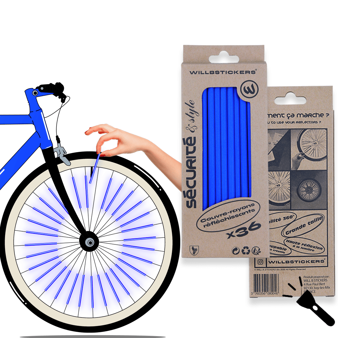 Nos couvre-rayons ultra réfléchissants et multi-couleur ! Restez visible à vélo Il est important d'être visible sur la route. Avec nos couvre-rayons réfléchissants, les automobilistes et piétons ne pourront pas vous louper. Doté d'un revêtement rétro-réfléchissant dernière génération cet accessoire est indispensable pour sécuriser vos trajets. Profitez de notre large gamme de couleur pour personnaliser votre vélo à votre image. Les avantages de nos réflecteurs: Grande taille : 15cm. Pack de 18 ou 36 réflecteurs de rayons. Packaging en carton éco-responsable sans plastique ni encre toxique. Facile d'installation. Peut-être découpé pour laisser place à votre imagination. Certification haute visibilité : Norme EN 20471 Réflecteurs universel pouvant s'adapter à tout type de rayons : vélo de ville, vélo pliant, BMX, VTT, Cargo, fauteuil roulant, remorque. Comment marche nos réflecteurs de rayons? Une fois votre pack en main, il suffit de sortir les couvre-rayons réfléchissants et de les clipser sur vos rayons de jante. Pour cela les réflecteurs disposent d'une fente. Insérez votre rayons, écoutez:" CLIPS" et le tour et joué ! Laissez place à votre imagination en disposant vos couvre-rayons de manière originale. Si vous avez une âme d'artiste vous pouvez également les découper pour multiplier les combinaisons. Une fois installés les couvre-rayons ne bougent plus et ne font pas de bruit. Ils vous offre une visibilité 360° de jour comme de nuit. @willbstickers
