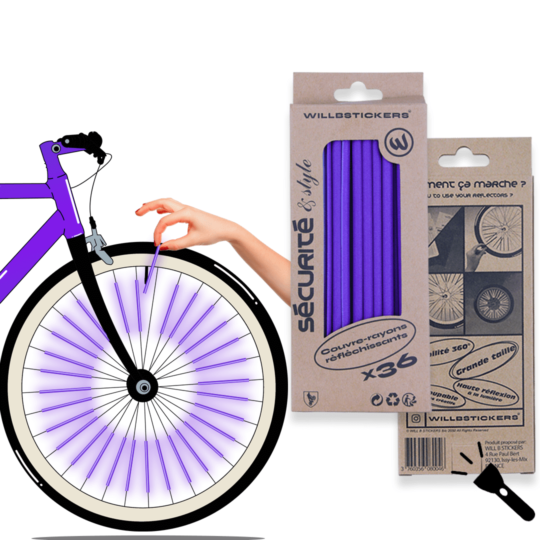 Nos couvre-rayons ultra réfléchissants et multi-couleur ! Restez visible à vélo Il est important d'être visible sur la route. Avec nos couvre-rayons réfléchissants, les automobilistes et piétons ne pourront pas vous louper. Doté d'un revêtement rétro-réfléchissant dernière génération cet accessoire est indispensable pour sécuriser vos trajets. Profitez de notre large gamme de couleur pour personnaliser votre vélo à votre image. Les avantages de nos réflecteurs: Grande taille : 15cm. Pack de 18 ou 36 réflecteurs de rayons. Packaging en carton éco-responsable sans plastique ni encre toxique. Facile d'installation. Peut-être découpé pour laisser place à votre imagination. Certification haute visibilité : Norme EN 20471 Réflecteurs universel pouvant s'adapter à tout type de rayons : vélo de ville, vélo pliant, BMX, VTT, Cargo, fauteuil roulant, remorque. Comment marche nos réflecteurs de rayons? Une fois votre pack en main, il suffit de sortir les couvre-rayons réfléchissants et de les clipser sur vos rayons de jante. Pour cela les réflecteurs disposent d'une fente. Insérez votre rayons, écoutez:" CLIPS" et le tour et joué ! Laissez place à votre imagination en disposant vos couvre-rayons de manière originale. Si vous avez une âme d'artiste vous pouvez également les découper pour multiplier les combinaisons. Une fois installés les couvre-rayons ne bougent plus et ne font pas de bruit. Ils vous offre une visibilité 360° de jour comme de nuit. @willbstickers