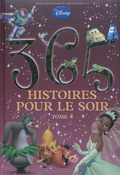 365 histoires pour le soir Tome 4 Dans ce tout nouveau tome, découvre 365 histoires à lire pour toute l'année ! De Janvier à Décembre, plonge chaque soir dans l'univers extraordinaire de Disney, avant de t'envoler avec tous tes héros préférés aux pays des rêves, la tête remplie de magie et d'aventures !