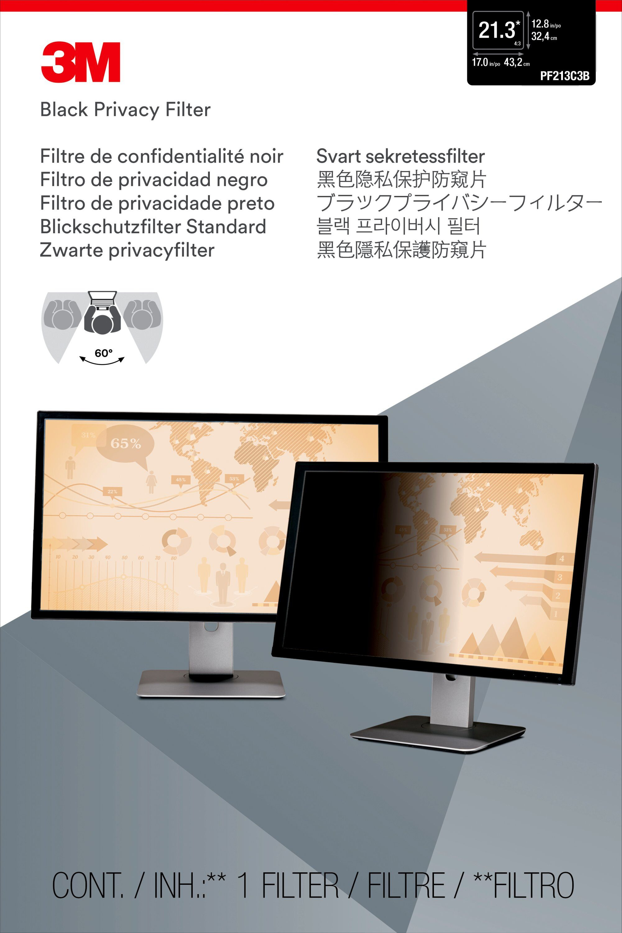| Libellé | 3M PF213C3B Filtre de confidentialité noir pour 54,1cm 21,3 4:3 |